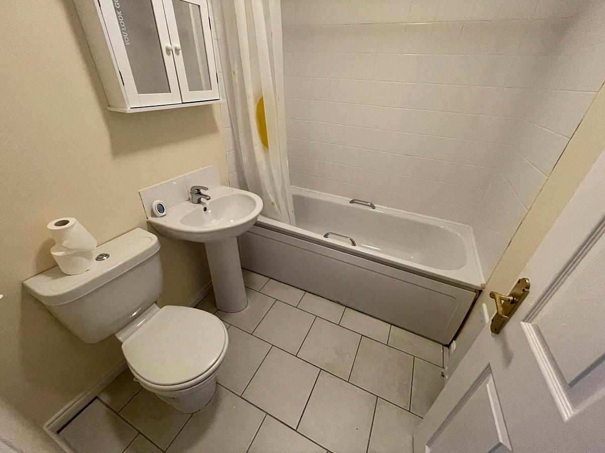 Second Floor - 2 double bedrooms with new carpets, Bathroom with white bath suite + shower over bath, tiled walls over bath and tiled flooring