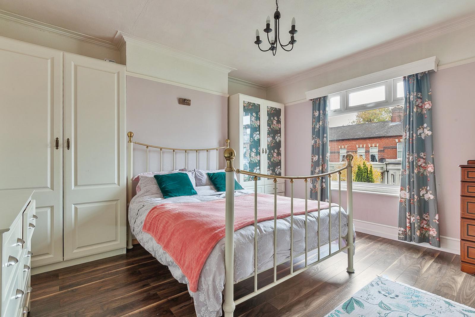 BEDROOM 14' 1" x 13' 5" (4.29m x 4.09m) Laminate wood effect floor, cornice ceiling, picture rail.