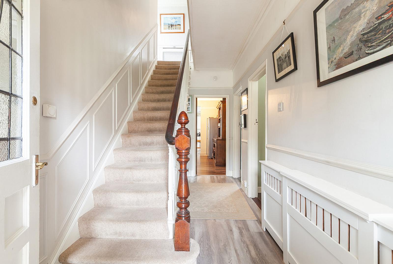 RECEPTION HALL Cornice ceiling, picture rail, laminate wood effect floor.