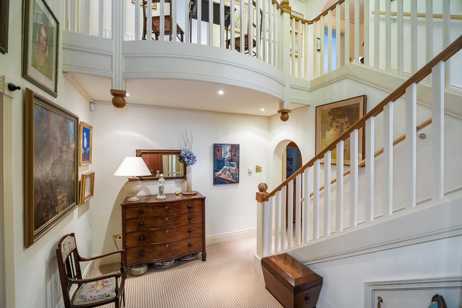 RECEPTION HALL WITH GALLERY LANDING Recessed low voltage spotlights, understairs storage cupboard, stairs to first floor.