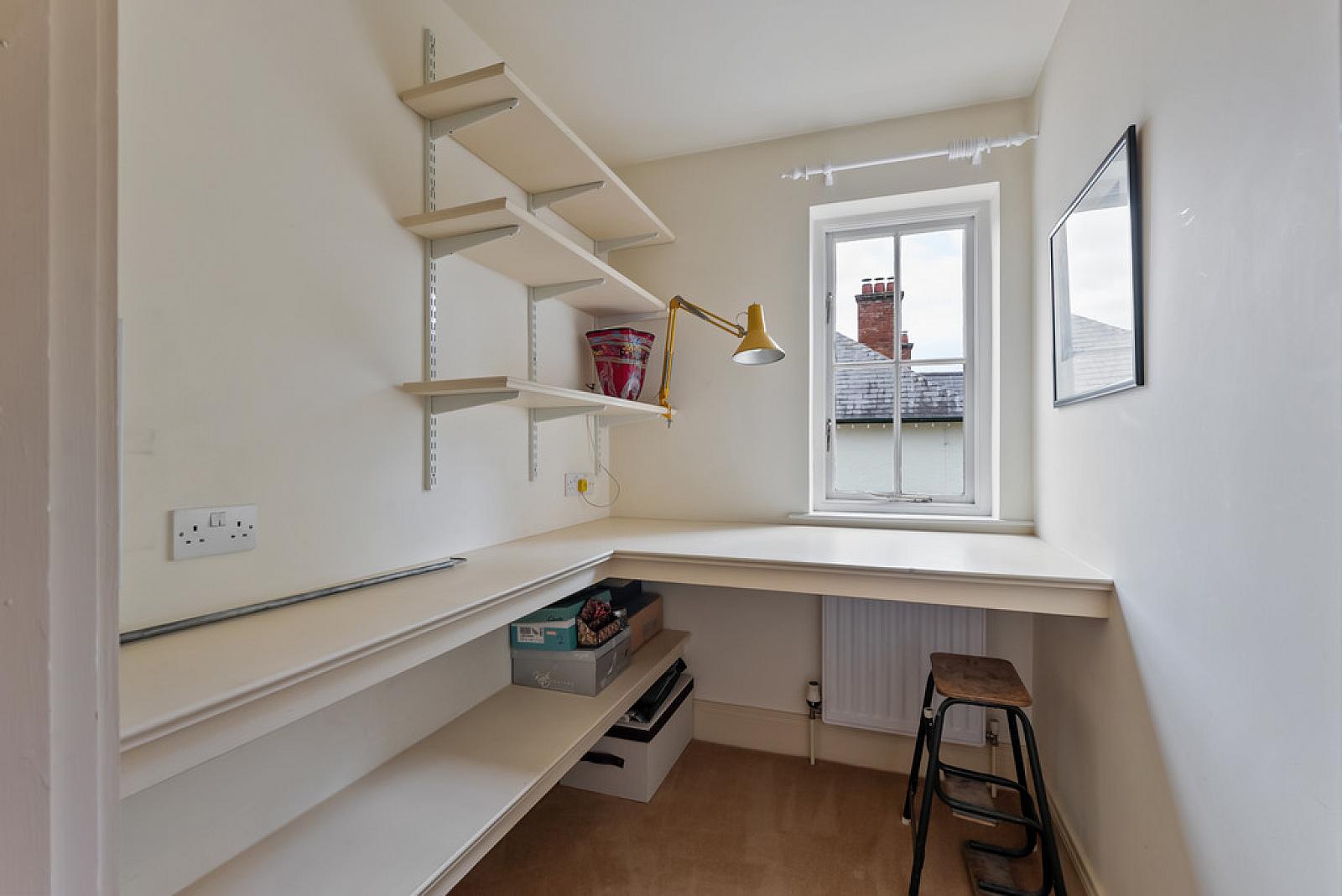 STUDY 6' 8" x 3' 5" (2.05m x 1.06m) Built in desk and shelving.