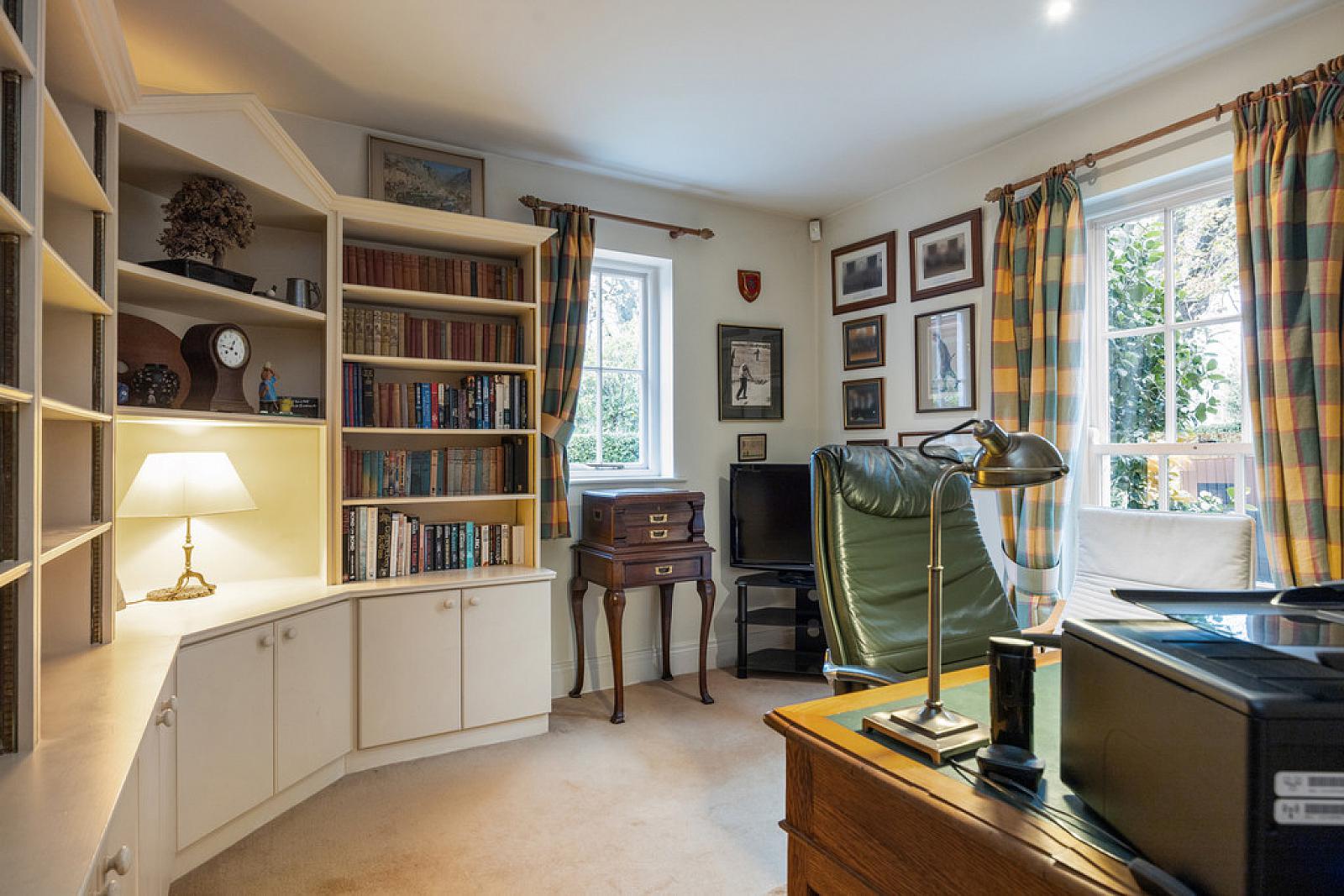 FAMILY ROOM/OFFICE 11' 6" x 11' 0" (3.52m x 3.37m) Built in shelving and storage, recessed low voltage spotlights.