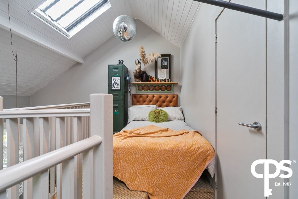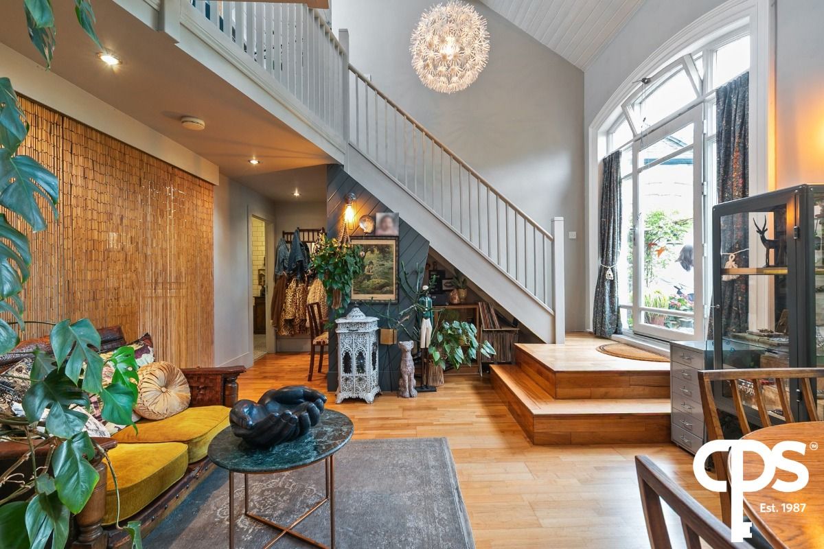 This stylish 2-bedroom duplex apartment combines period charm with contemporary design. Soaring vaulted ceilings, expansive floor-to-ceiling windows, and a feature mezzanine balcony create a sense of space and light throughout. Outside, a private raised decking area and gardens provide the perfect setting for entertaining, relaxing, or simply enjoying a quiet escape.