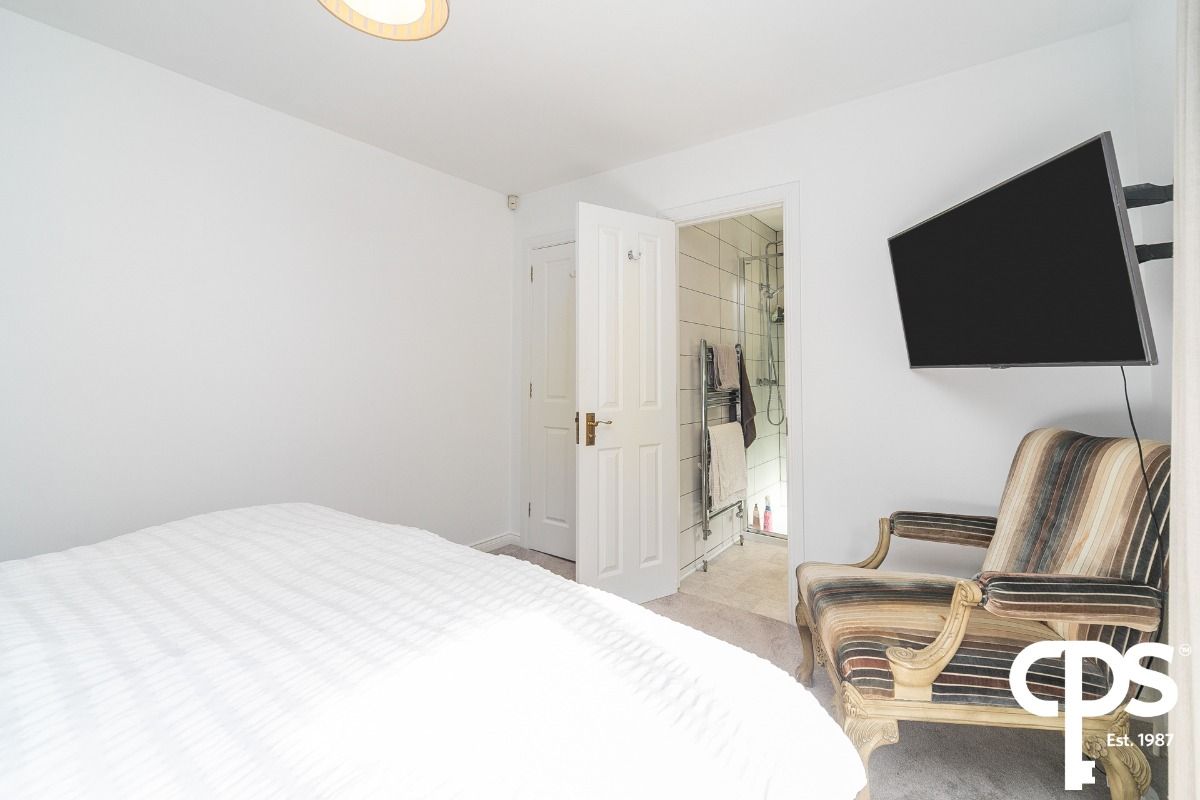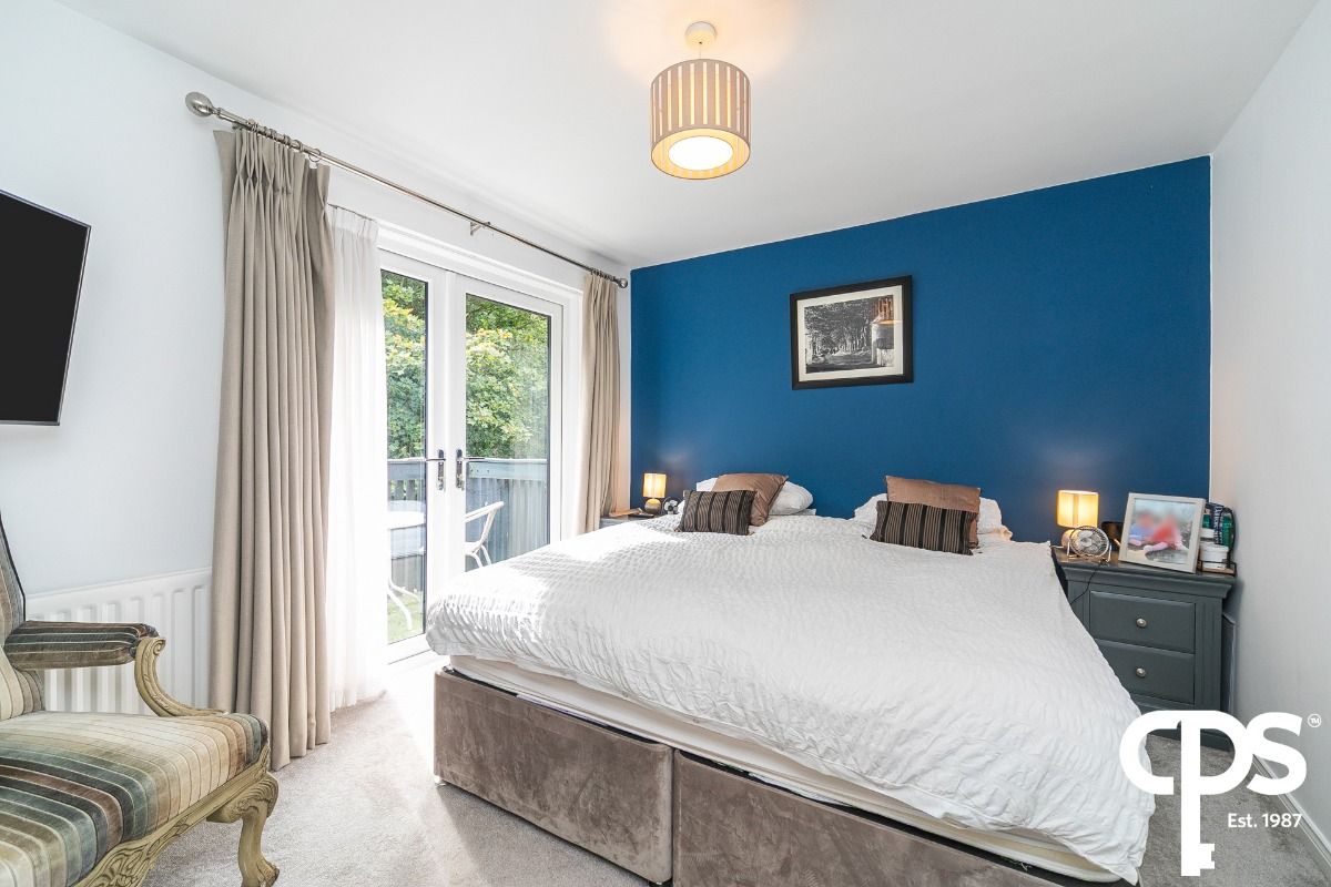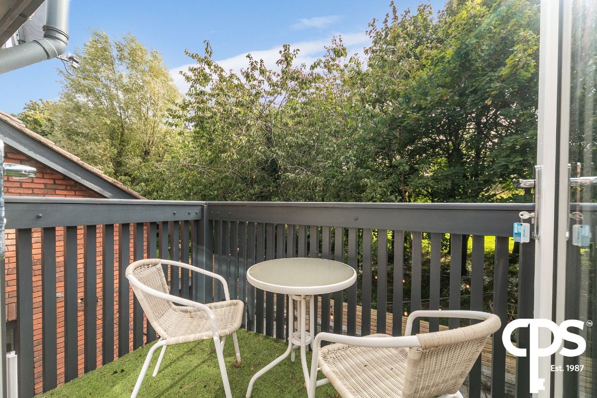 Upstairs, the principal bedroom features an ensuite and private balcony with space for a bistro set. Three further bedrooms and a stylish family bathroom complete the accommodation.