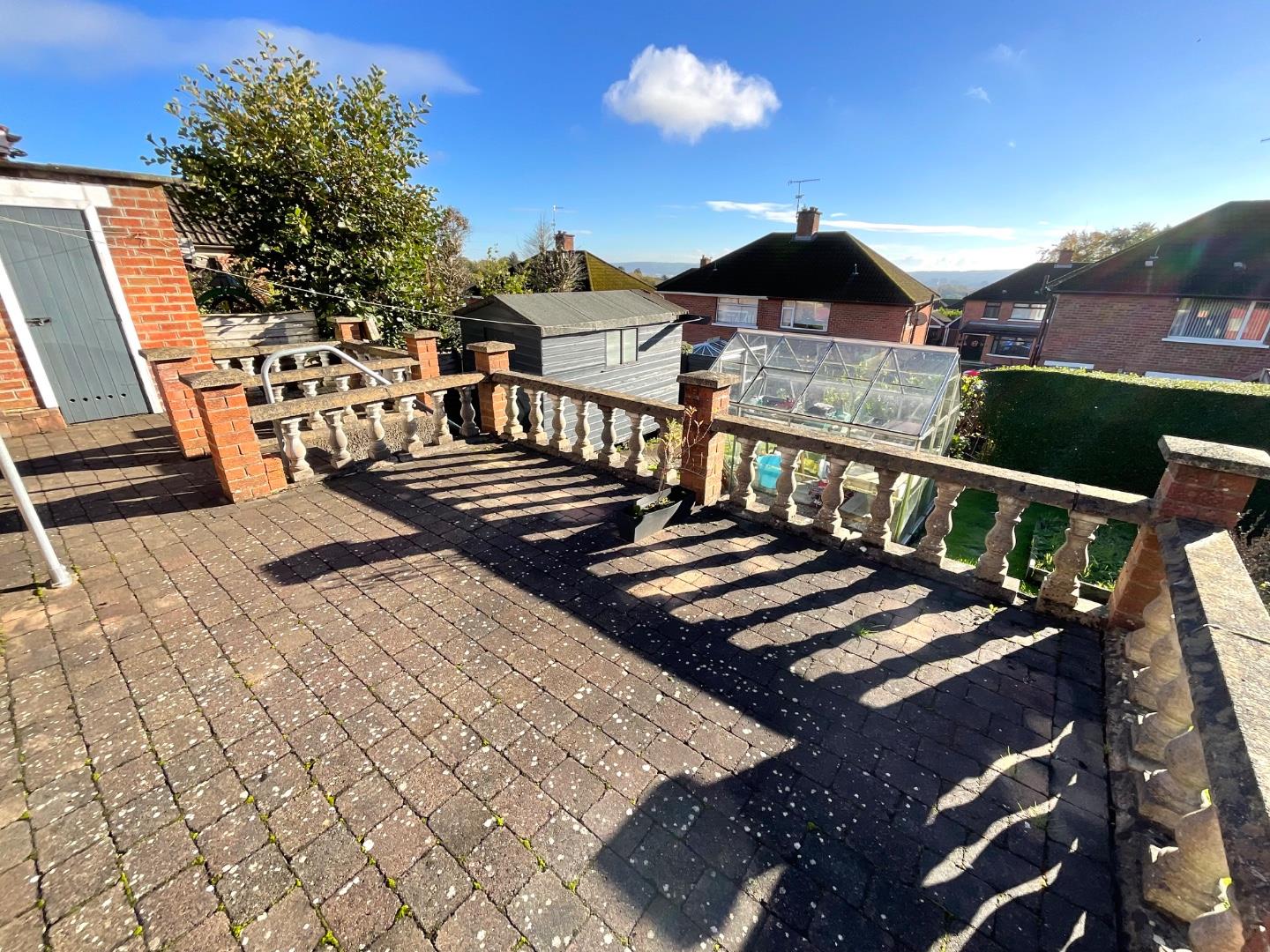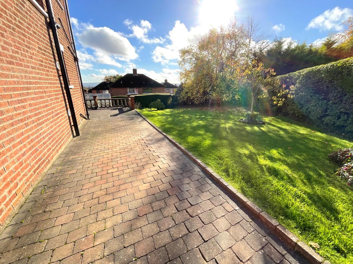 Side and Rear Mature gardens laid out in lawn with sizeable patio area, privacy hedging, garden shed, greenhouse, enclosed boiler house, water tap, exterior lighting
