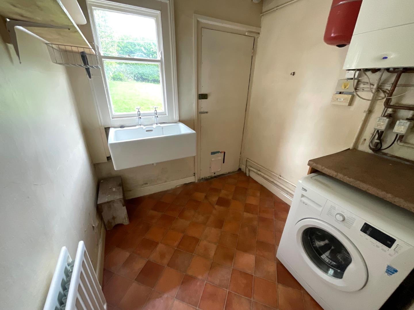 Wall mounted Belfast sink, wall mounted gas boiler, plumbed for washing machine, double panelled radiator, access to rear garden
