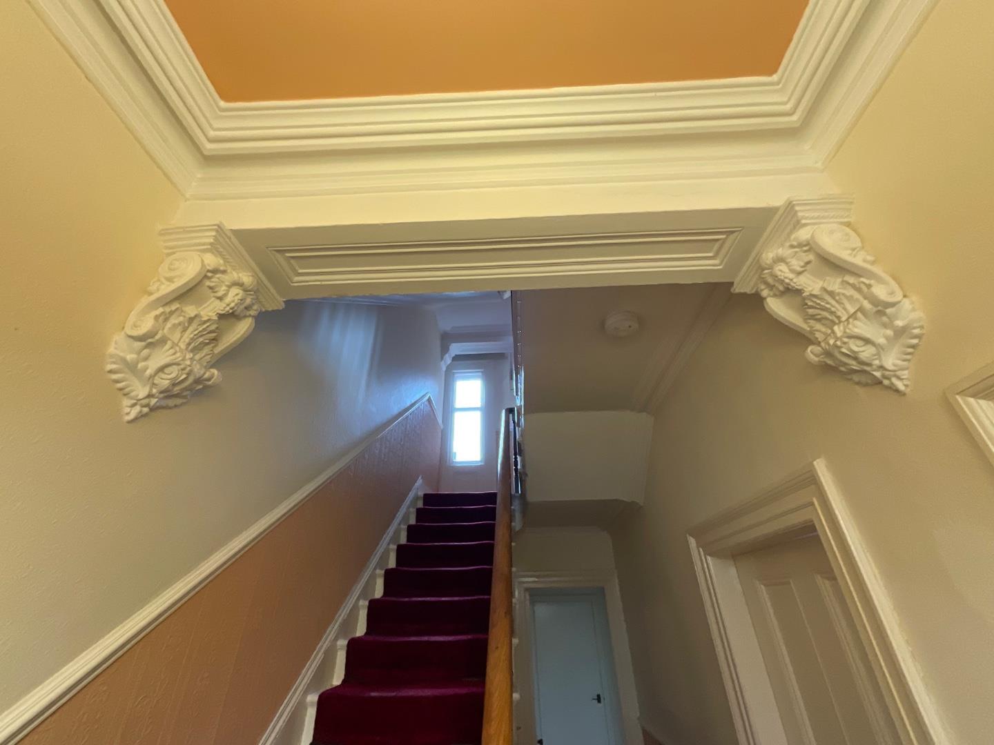Beautiful original mouldings, generous under stair storage, enclosed electricity meter, stairs leading to first floor