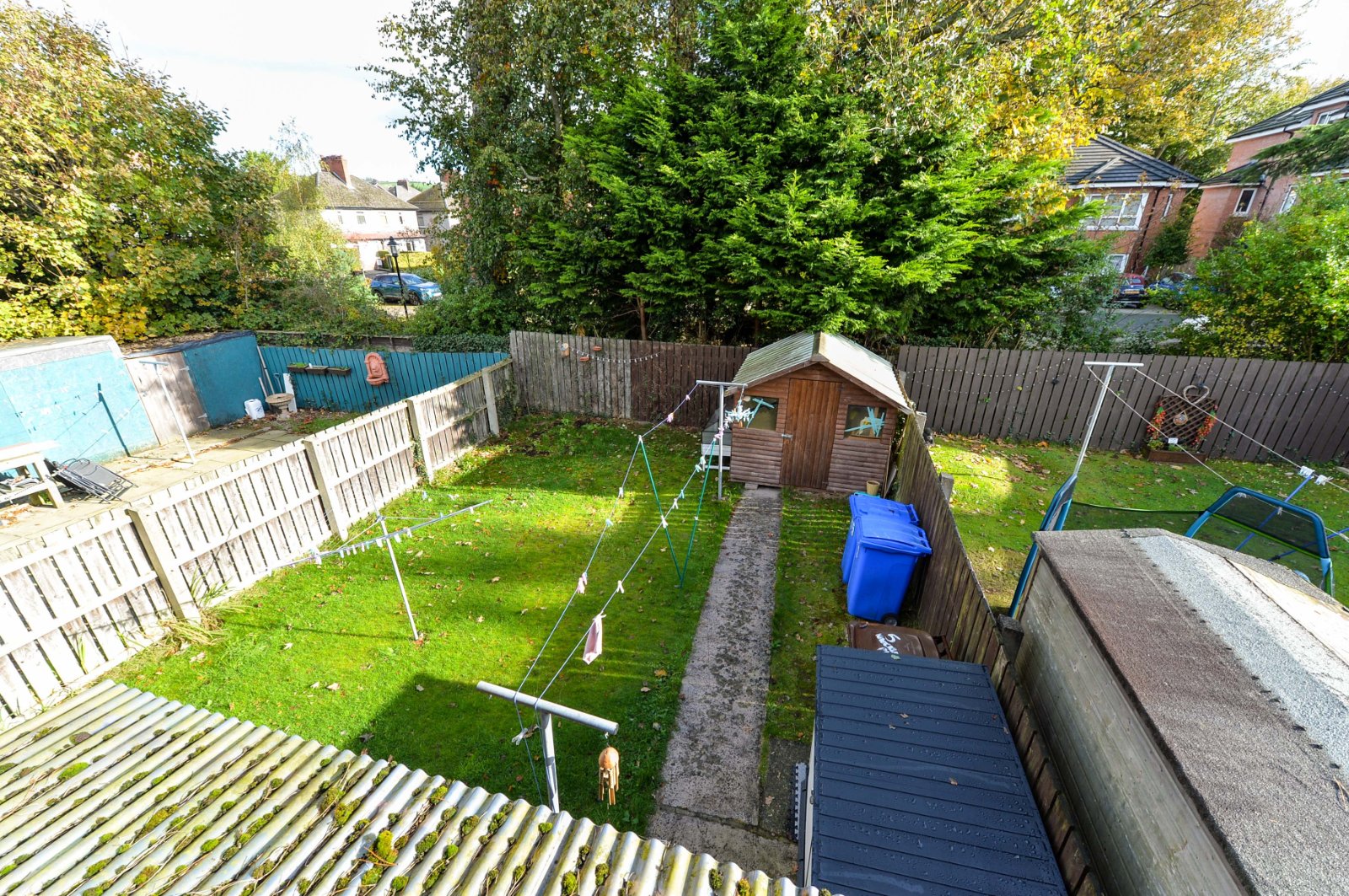 Well tended garden area to front in lawn and shrubbery. Enclosed private garden area to rear bordered by fencing in lawn and paved patio area. Garden shed. Outside tap / light. Outside storage with gas fired boiler and storage below.