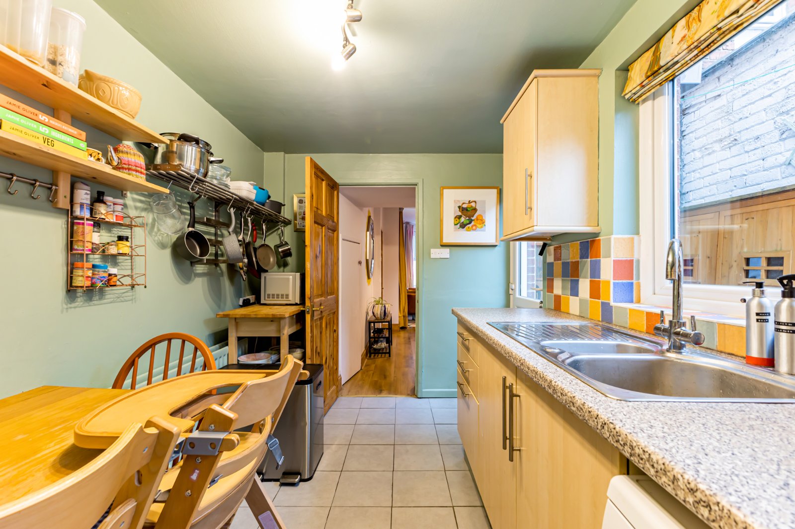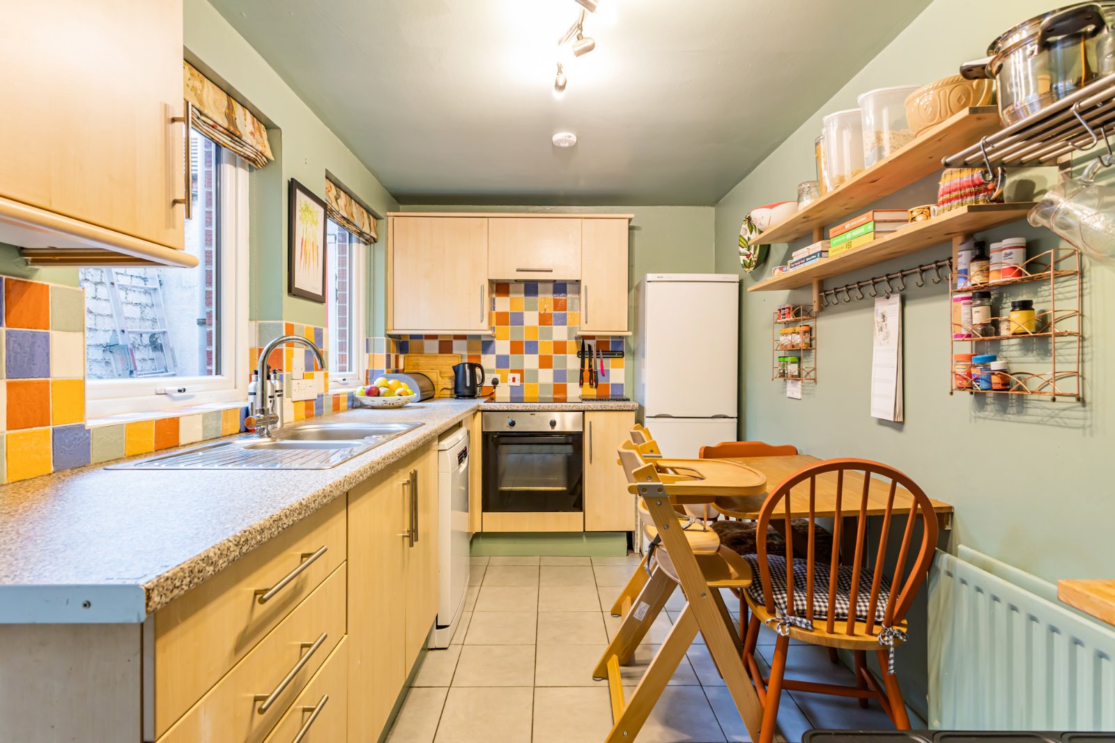 The kitchen has an excellent range of high and low level units, 1.5 drainer with mixer tap, integrated electric oven and hob and concealed extractor. There is ample dining space, and the kitchen has also been plumbed for a dishwasher. The room has been finished with a tiled floor and partially tiled walls.