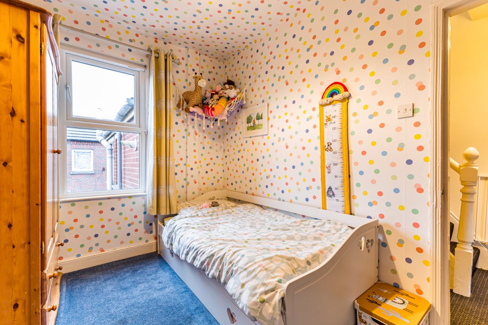 An excellent third bedroom with carpet and an outlook to the rear of the property.