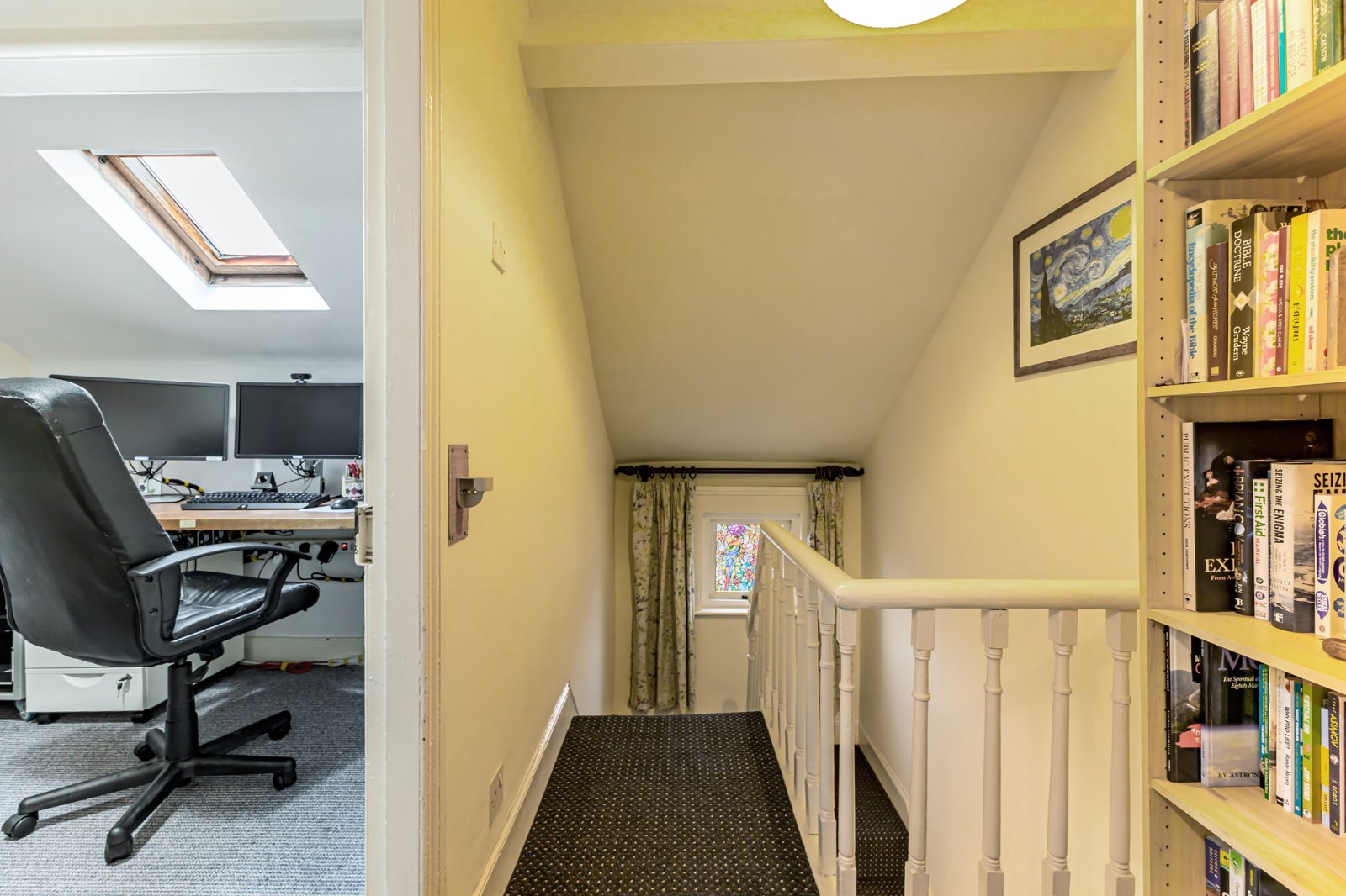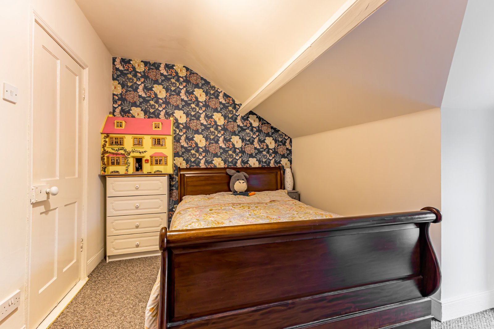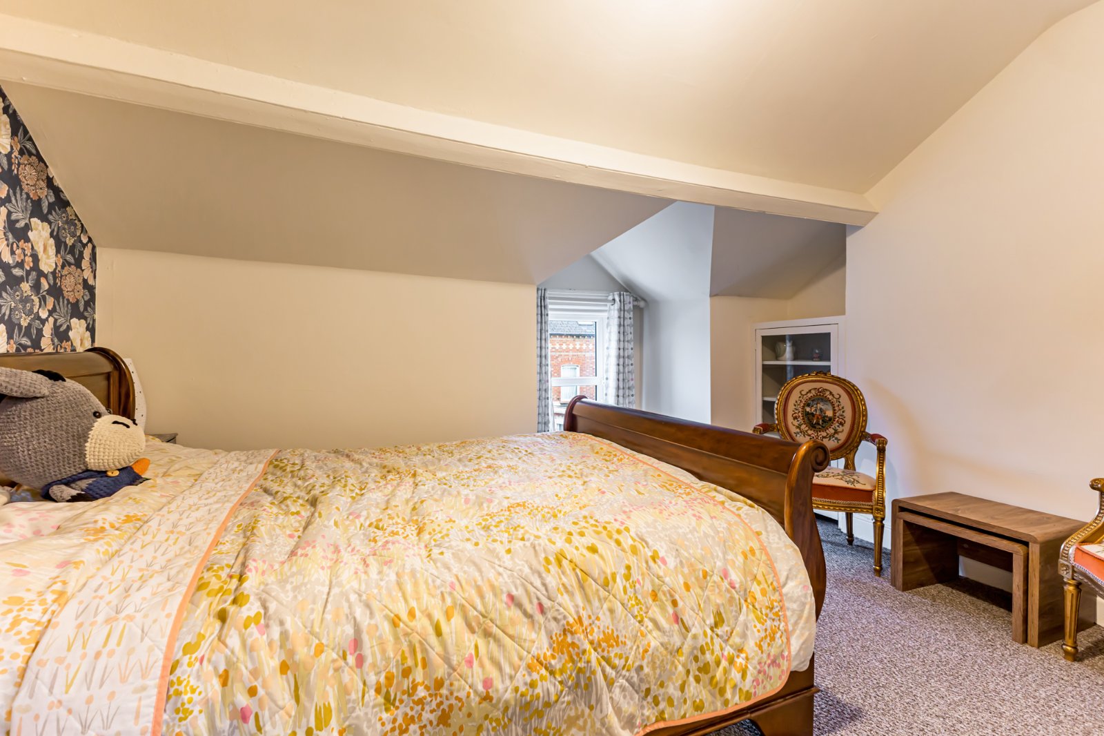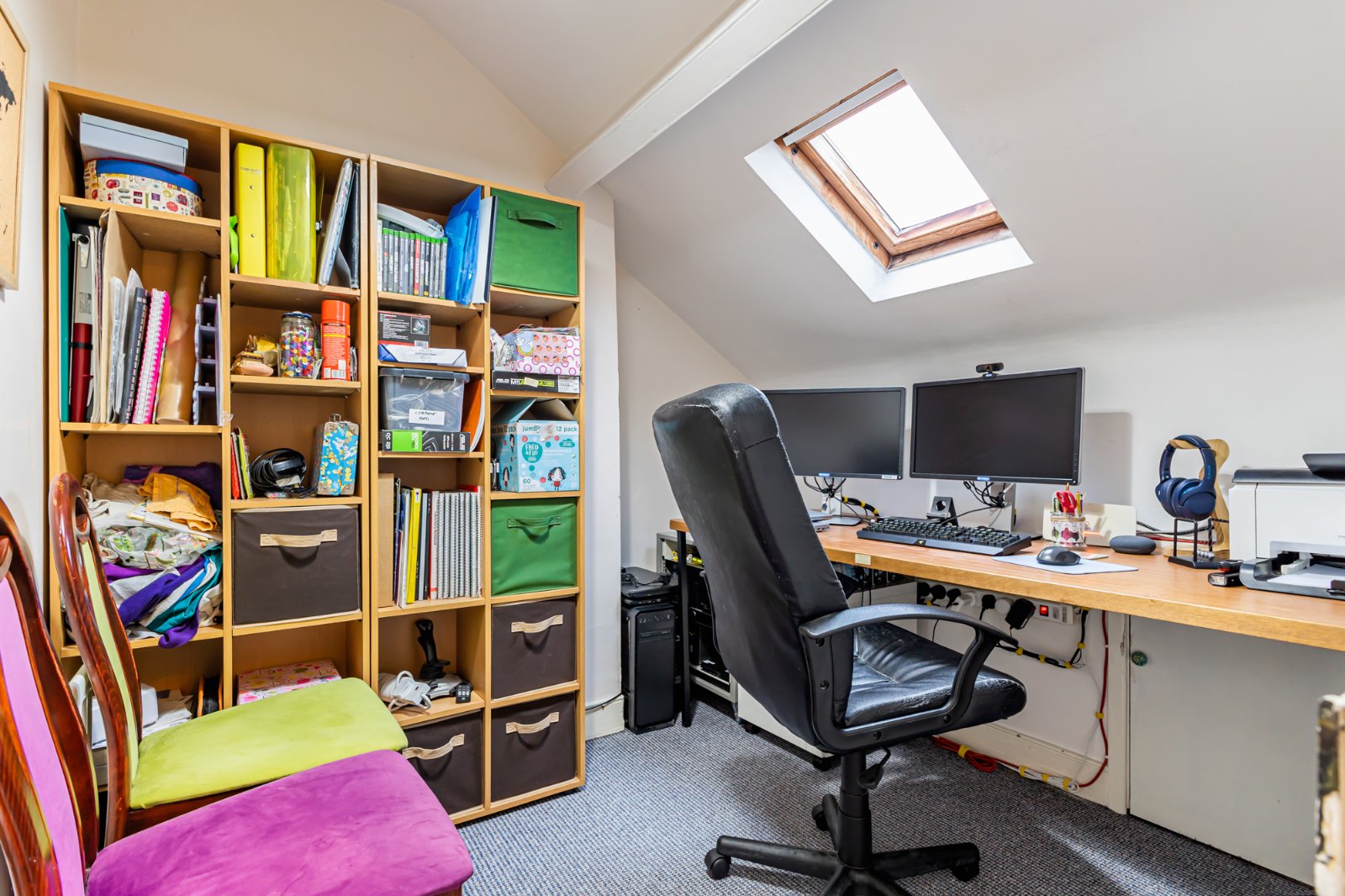 A generous fourth bedroom with carpet and velux window.