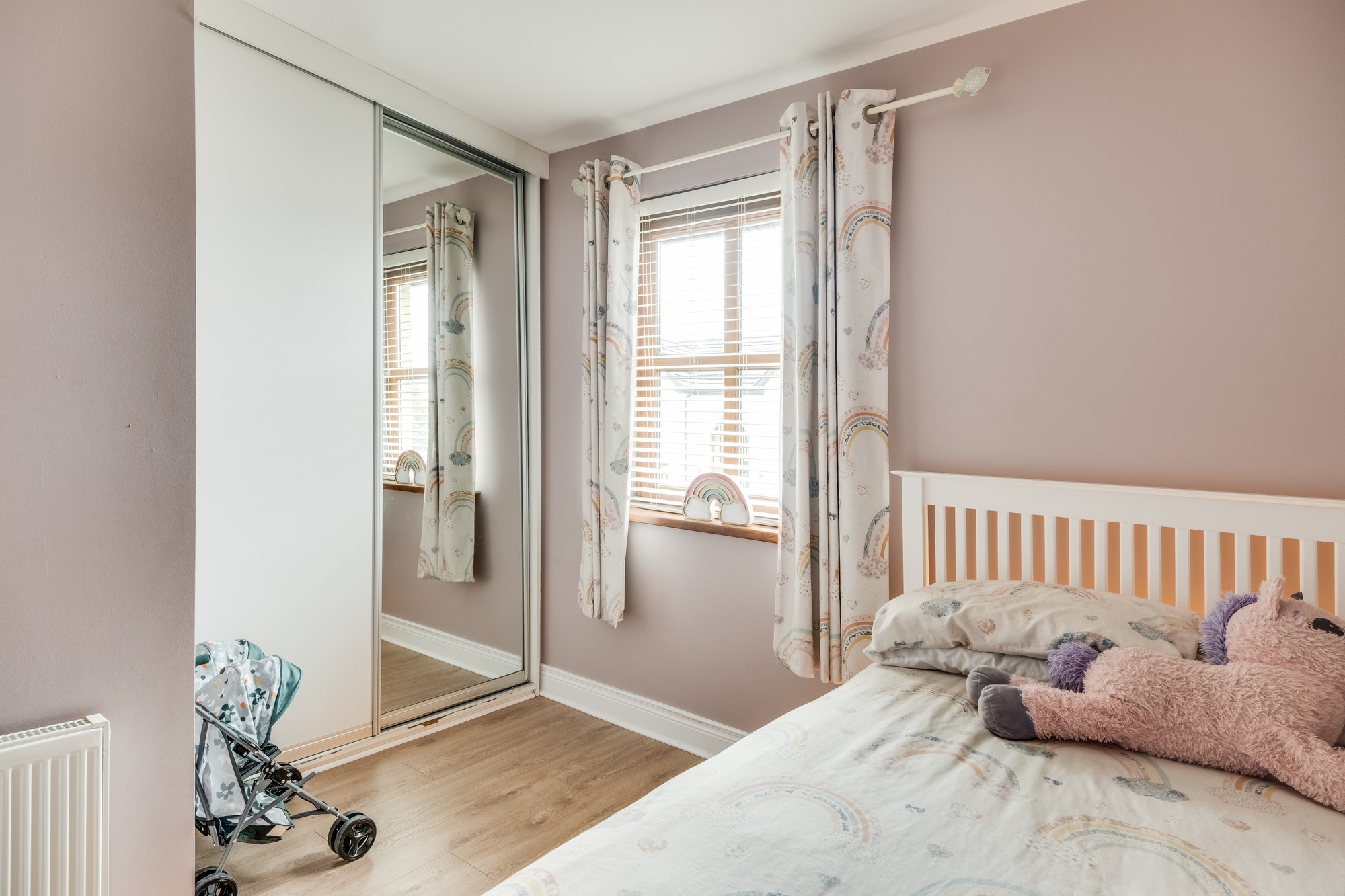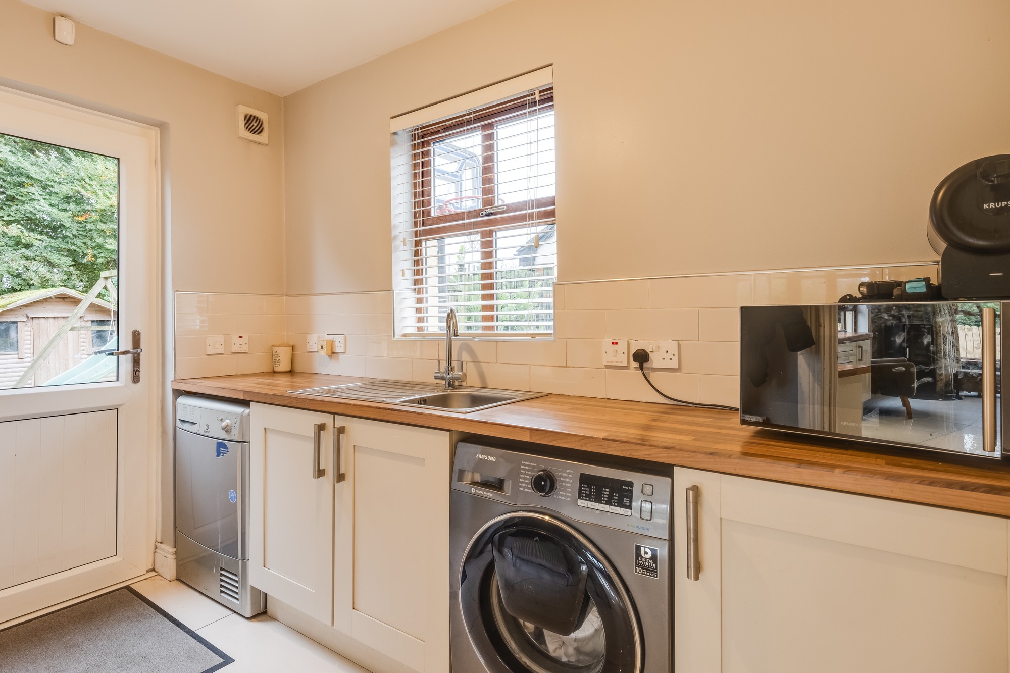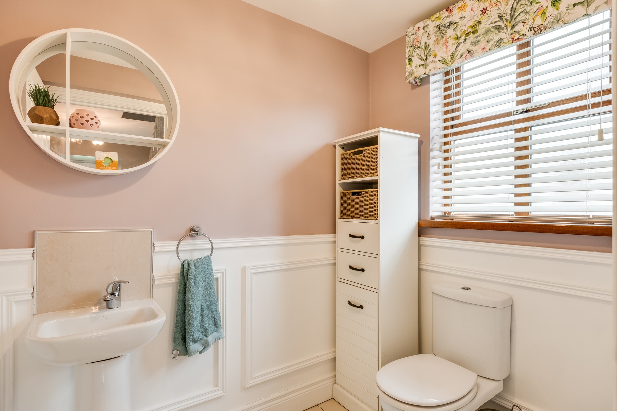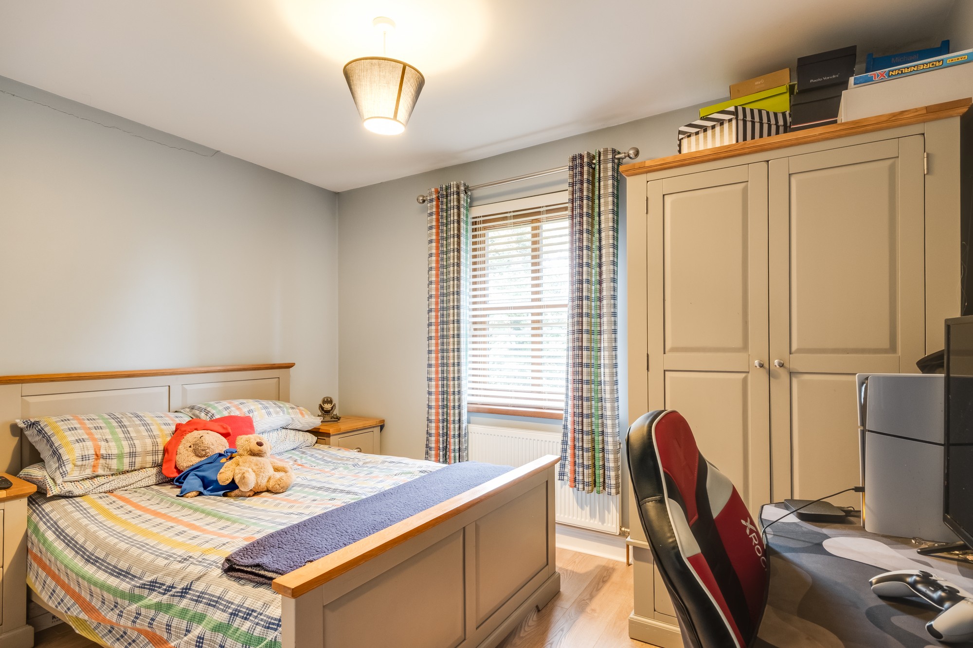 Externally, the property offers excellent outdoor space designed for both practicality and enjoyment. To the side, a tarmac driveway provides generous off-street parking, while the surrounding gardens to the side and rear create a delightful setting for family living. The spacious lawn and paved patio area offer ideal spaces for outdoor relaxation, seamlessly blending with the home’s natural surroundings. To the rear, an extensively paved area provides superb versatility, perfect as a safe play space for children or an enclosed area for small pets. All of this is beautifully framed by the tranquil backdrop of mature woodland, enhancing the sense of privacy and connection with nature.