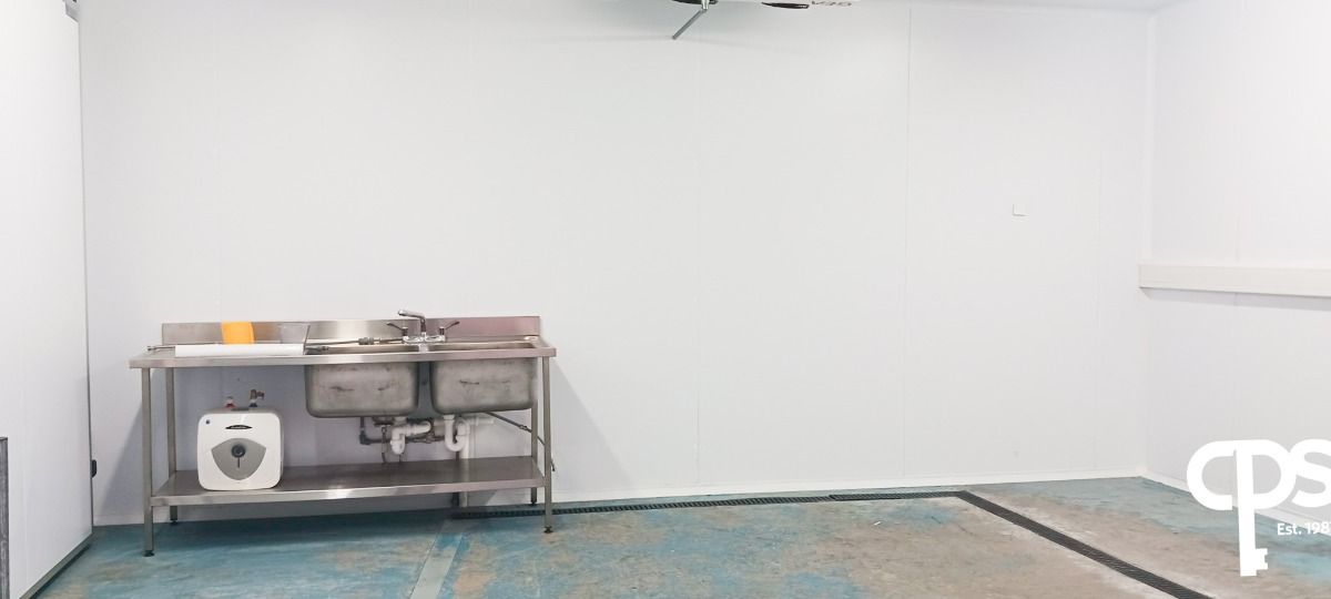 21a Milltown Road comprises a substantial warehouse unit circa 3,696 Sqft (23.5m x 14.7m) and yard space to the front, side and rear.  The warehouse has a steel frame with blockwork construction, concrete flooring, 2x electric roller shutter doors, and 2x pedestrian entrances. Within the warehouse there are 2x large refrigerated units, 6m x 6m each.  The large yard is laid with concrete and part communal with access required by other parties to a private shed.