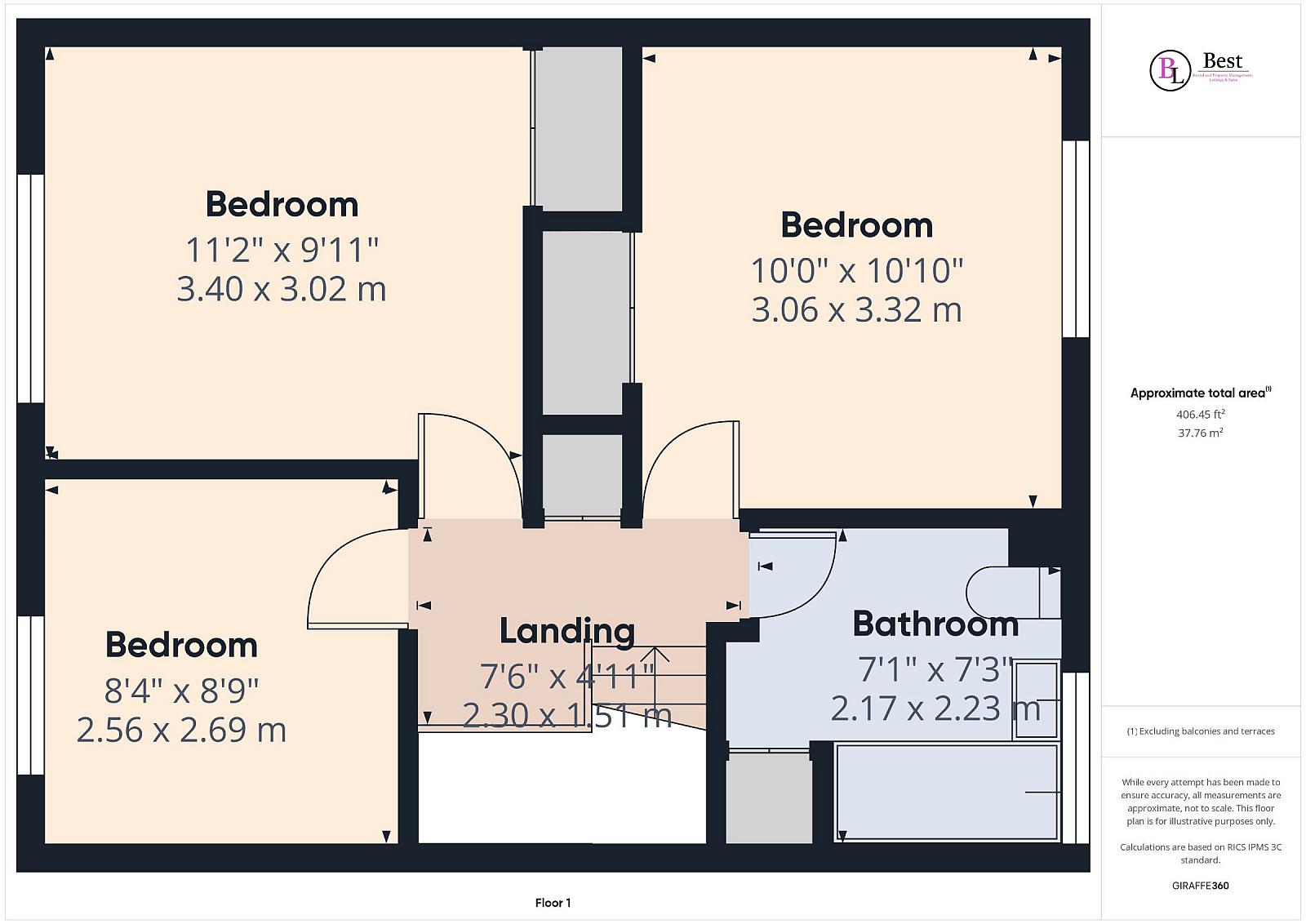Bedroom 3 w: 2.53m x l: 2.68m (w: 8' 4" x l: 8' 10")