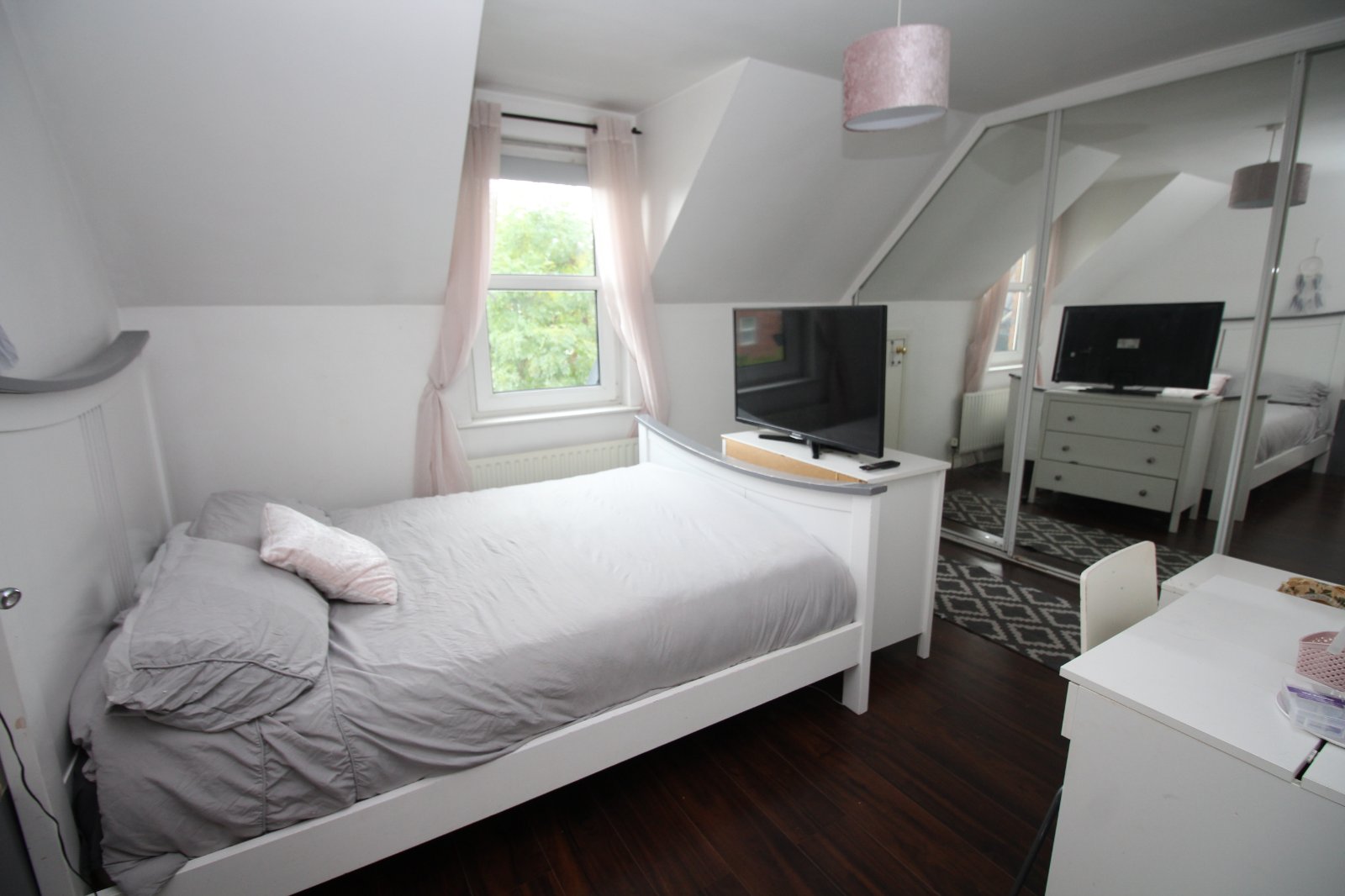 Fitted robes with mirrored sliding doors. Laminate wooden floor.
