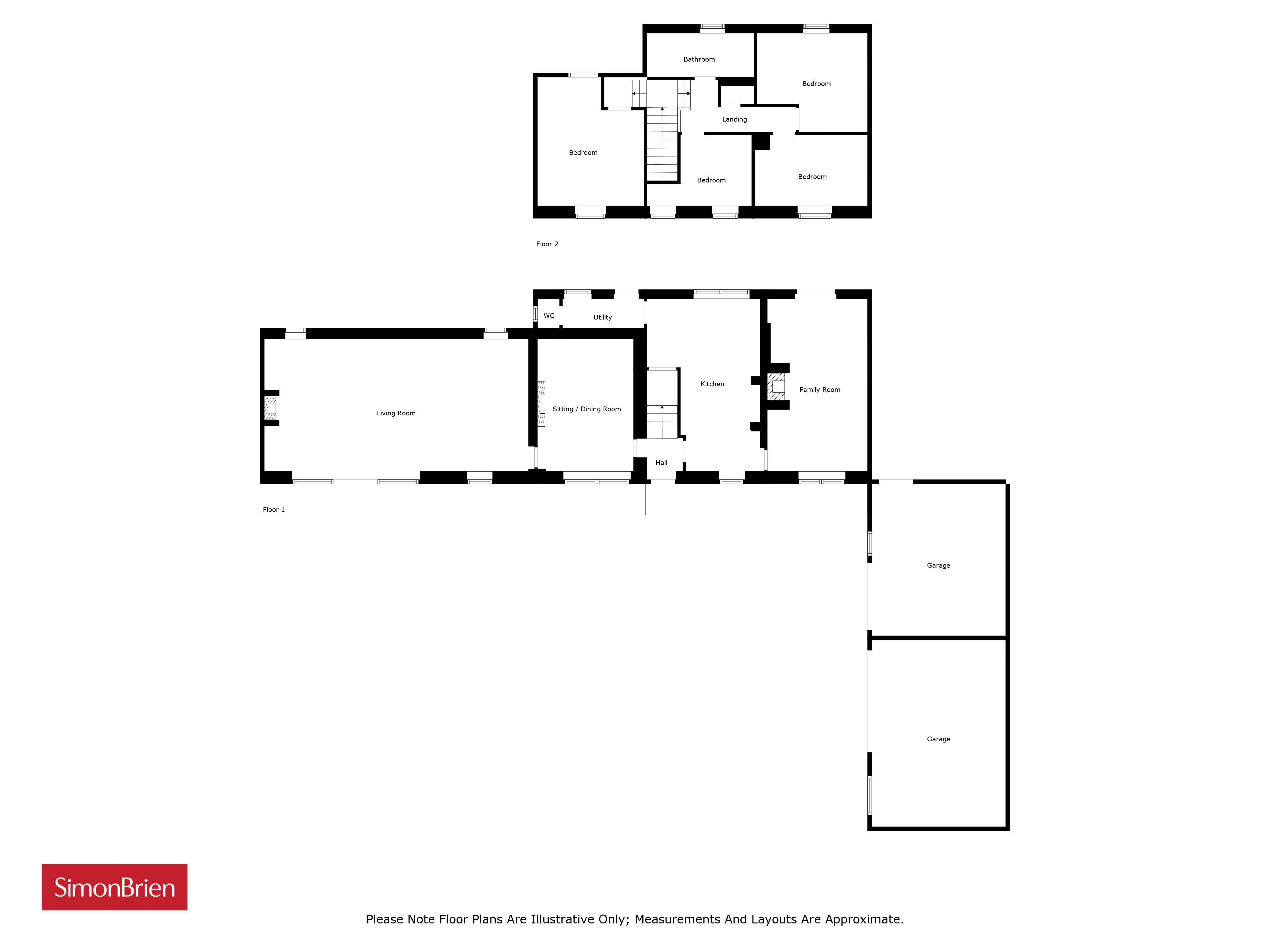 Downstairs the layout comprises reception hall, kitchen/dining room, utility room with downstairs wc, snug/dining room, spacious living room and large feature family room. Upstairs there are four well-proportioned double bedrooms and a family bathroom. The property also benefits from double attached garages and a range of useful outbuildings. The property has oil fired central heating, two feature open fireplaces, a multi-fuel stove and upvc windows and doors.