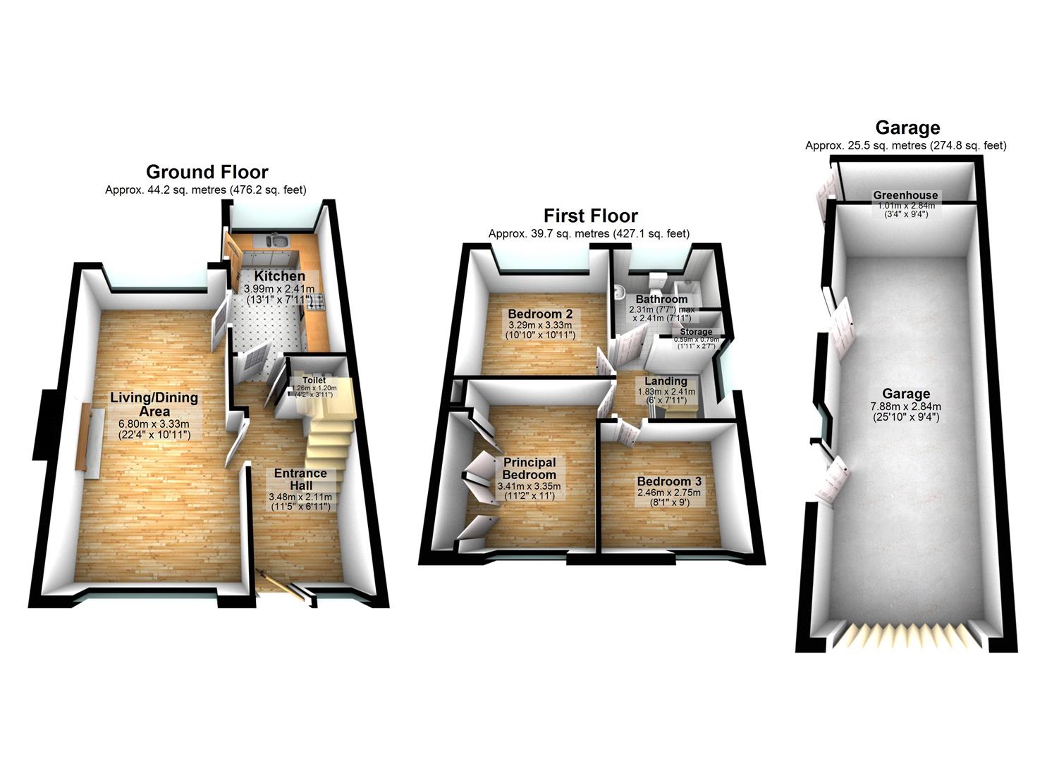 Upstairs are three well-proportioned bedrooms and a contemporary family bathroom. Externally, the property benefits from a detached garage, a tarmac driveway providing ample off streetcar parking, and a paved courtyard to the front. To the rear, a fully enclosed garden enjoys a pleasant outlook over fields behind.
