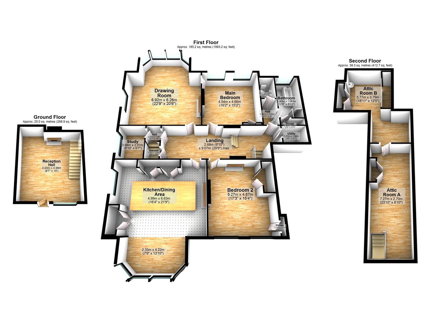 Fabulous return landing, high cornice ceiling and glass atrium, walk-in cloaks, boot room, utility room, bay area on return.