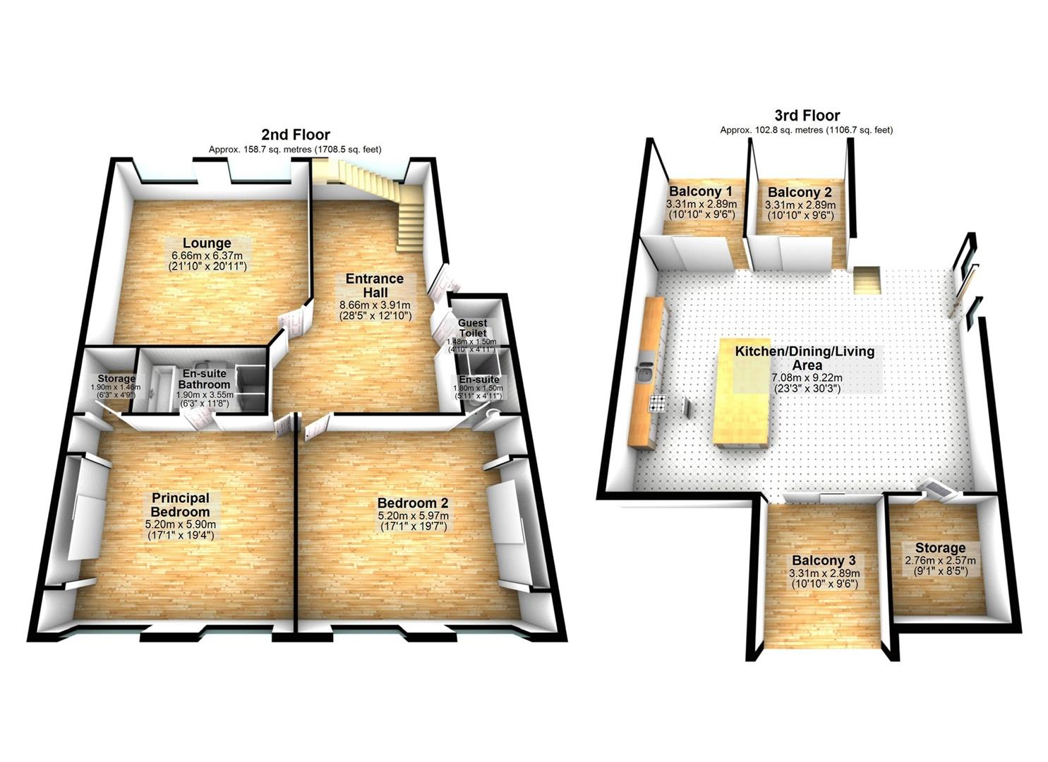 BALCONY TWO: 10' 10" X 9' 6" (3.30m X 2.90m)
