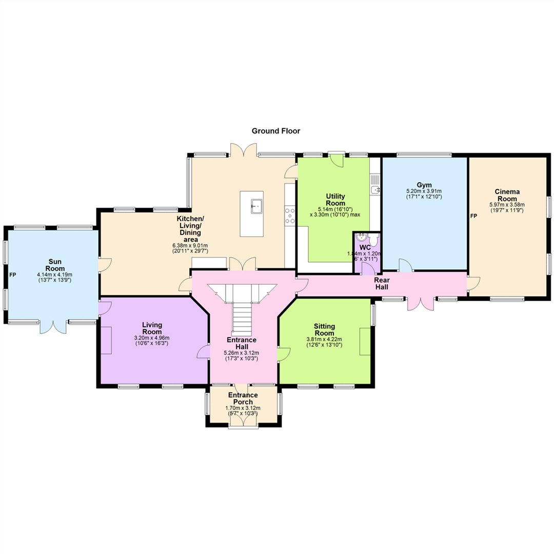 The property comprises stunning entrance hall, sitting room, living room through to sunroom with wood burning stove, bright and spacious open plan kitchen with dining area, utility room and WC, and home gym and cinema rooms. On the first floor there is a large gallery landing with area for study, five double bedrooms, master with ensuite. There is also a luxury family bathroom with feature free standing style bath.