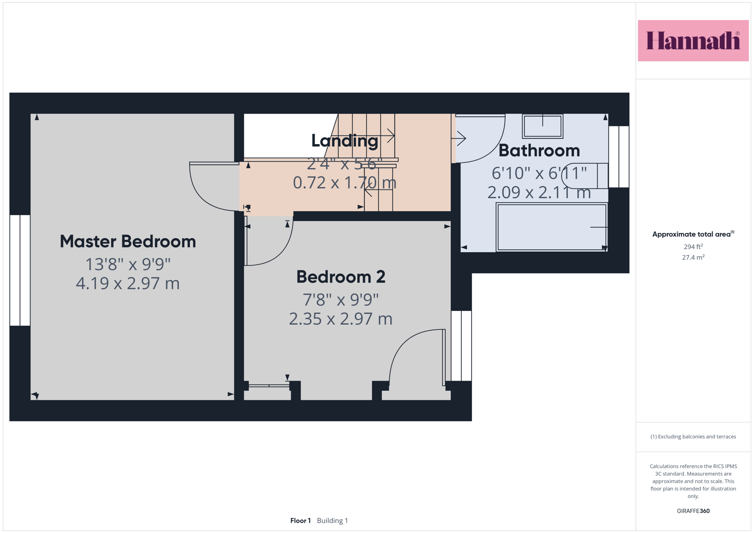Landing 2'4" X 5'7" (0.72m X 1.70m)
