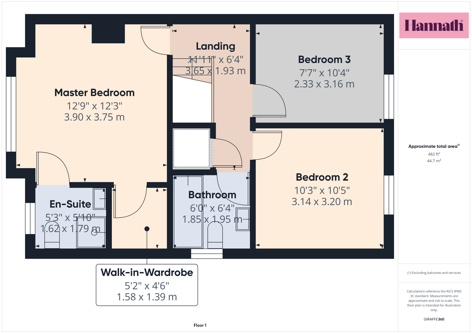 Master Bedroom 12'10" X 12'4" (3.90m X 3.75m)