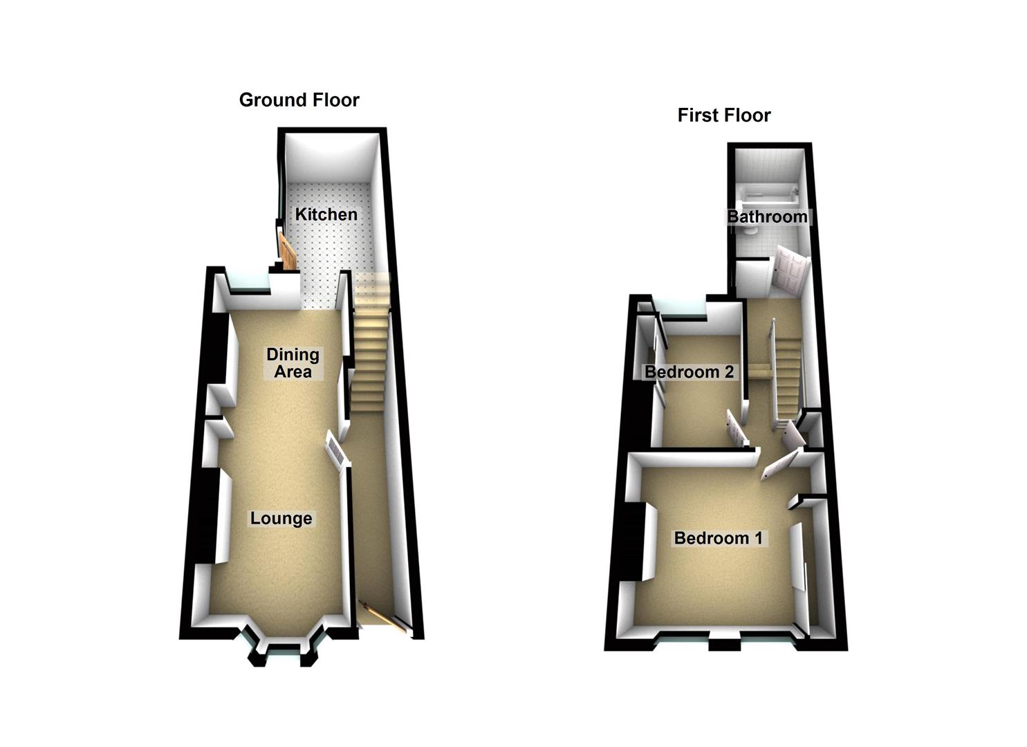 The property itself is a traditional mid-terrace home that comprises of a through lounge / dining room, kitchen (all fixtures have been removed), two bedrooms and white bathroom suite on the first floor. The property also benefits from upvc double glazing and oil heating (please note that the oil tank has been removed). Externally there is enclosed yards to the front and the rear, along with an additional covered area.