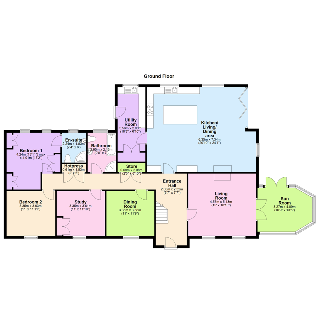 Open-plan kitchen/dining/living area, Utility room, Formal dining room, Study/home office, Family bathroom, Two well proportioned bedrooms, including a master with ensuite