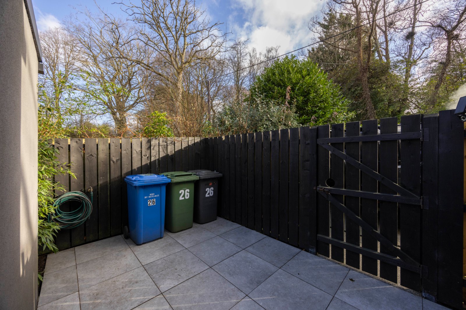 Bin store. Water supply. Outside lighting. Access to garden store.