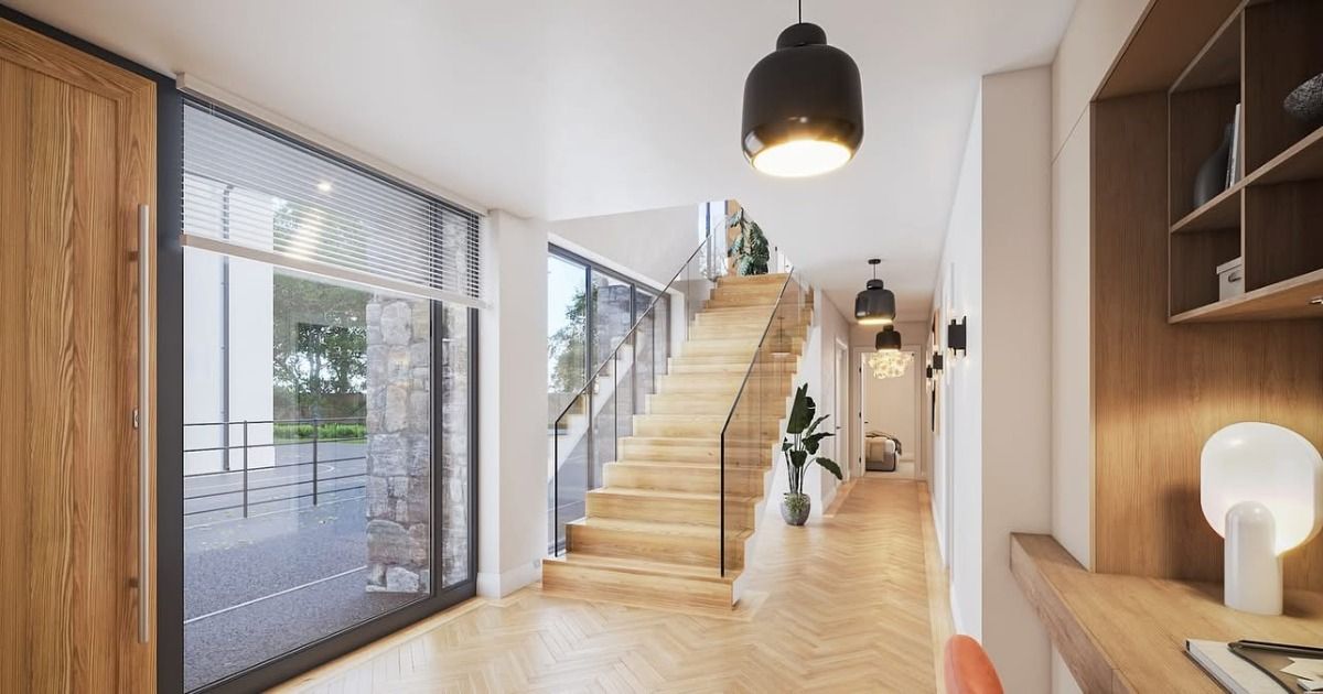 Built by the renowned McGinnis Group, these four exceptional detached homes redefine modern luxury, offering breathtaking views over the River Foyle and the striking new bridge. Designed with architectural flair, each home boasts bright, spacious interiors where natural light floods through expansive glazing, accentuating the double-height kitchen, dining, and living areas—the true heart of the home.