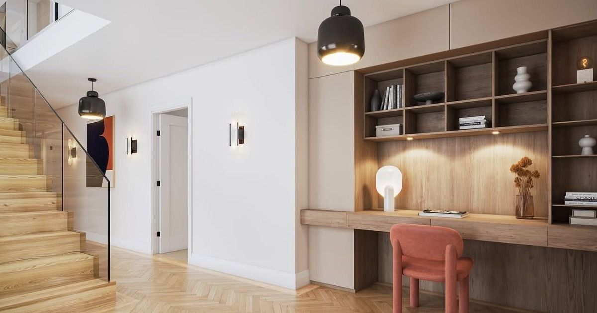 Fitted storage and desk at entrance