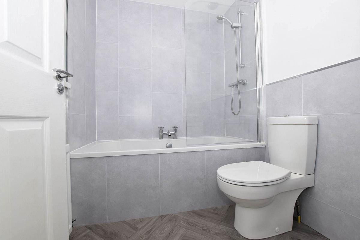 Panel bath with shower over. Vanitory unit. Low flush w.c.
