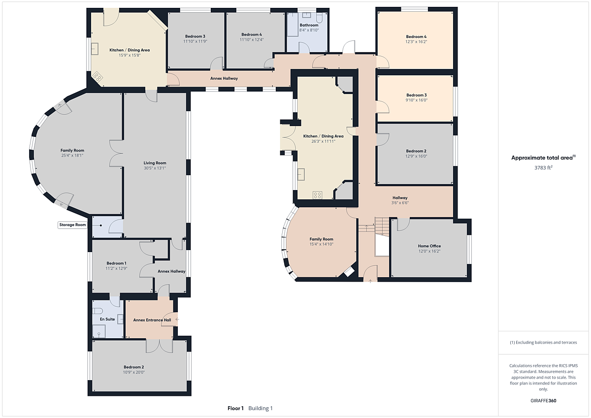 Self-contained Annex with four bedrooms, two reception rooms and a kitchen / dining area