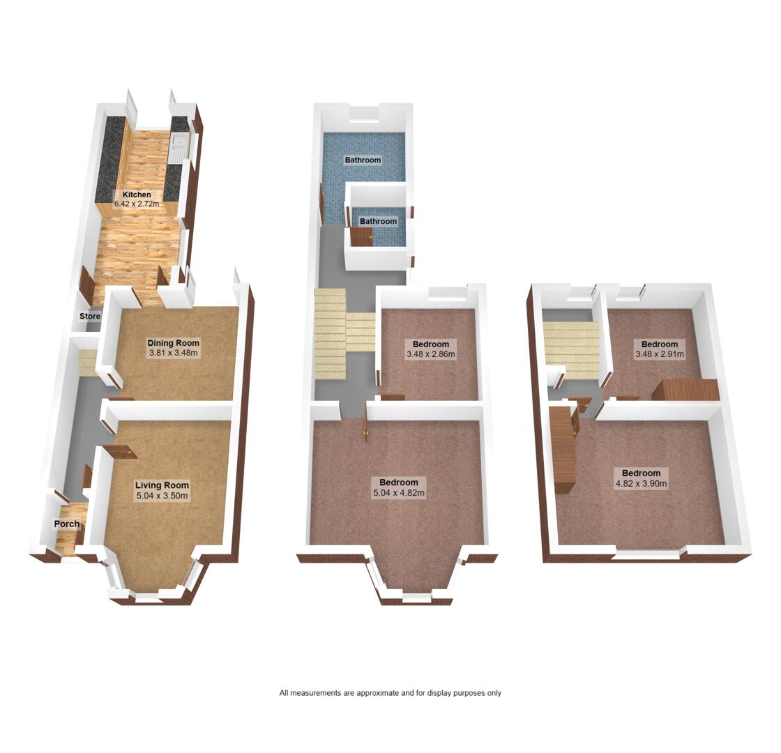 The ground floor comprises dining/family room with bay window, cornice ceiling and solid wooden floorboards and sitting room with period cast iron fireplace, open fire and solid wooden floor as well as a kitchen with casual dining and French doors onto the rear garden. Upstairs this fine home is further enhanced by having four well proportioned bedrooms, two of which benefit from the picturesque views. One of the bedrooms would be ideal as an additional reception if required. You also have two bathrooms, both with three piece suites. Outside there is a front garden in lawns and fully enclosed rear garden and paved courtyard to the side. Other benefits include Phoenix Gas heating and uPVC double glazed windows.