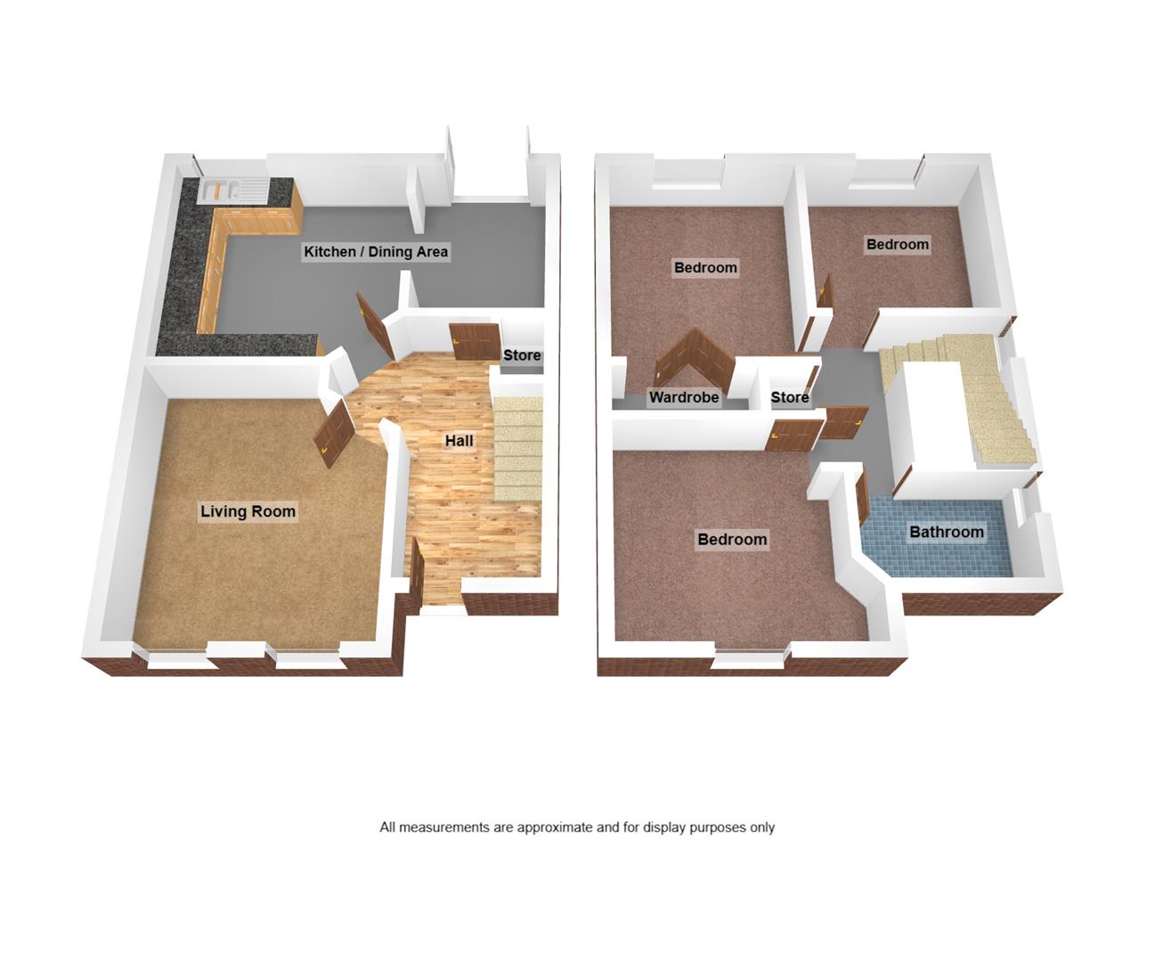 Upstairs, there are three comfortable bedrooms, each thoughtfully laid out to offer flexibility whether you're growing a family, working from home or welcoming guests. The main bedroom benefits from built-in wardrobes, adding a touch of convenience and extra storage. The contemporary bathroom is fresh and modern, featuring a full white suite with a shower over the bath, tiled finishes and soft lighting.