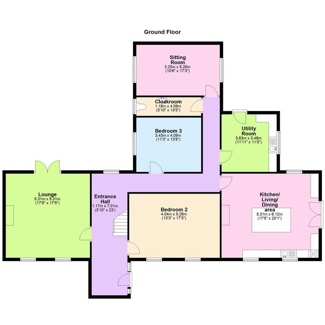 Sitting area 17'05 X 10'09 (5.31m X 3.28m)