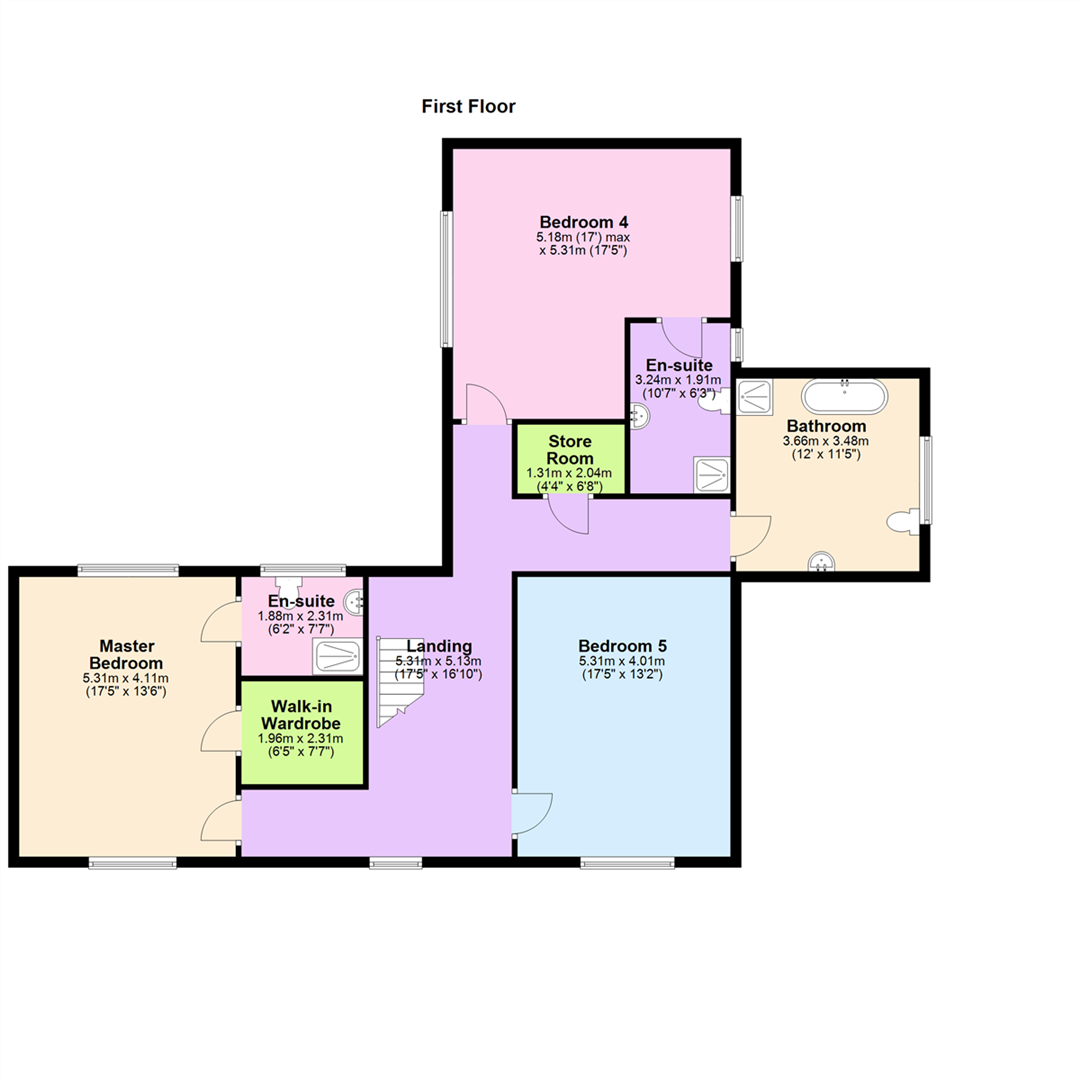 Master Bedroom 17'05 X 13'06 (5.31m X 4.11m)