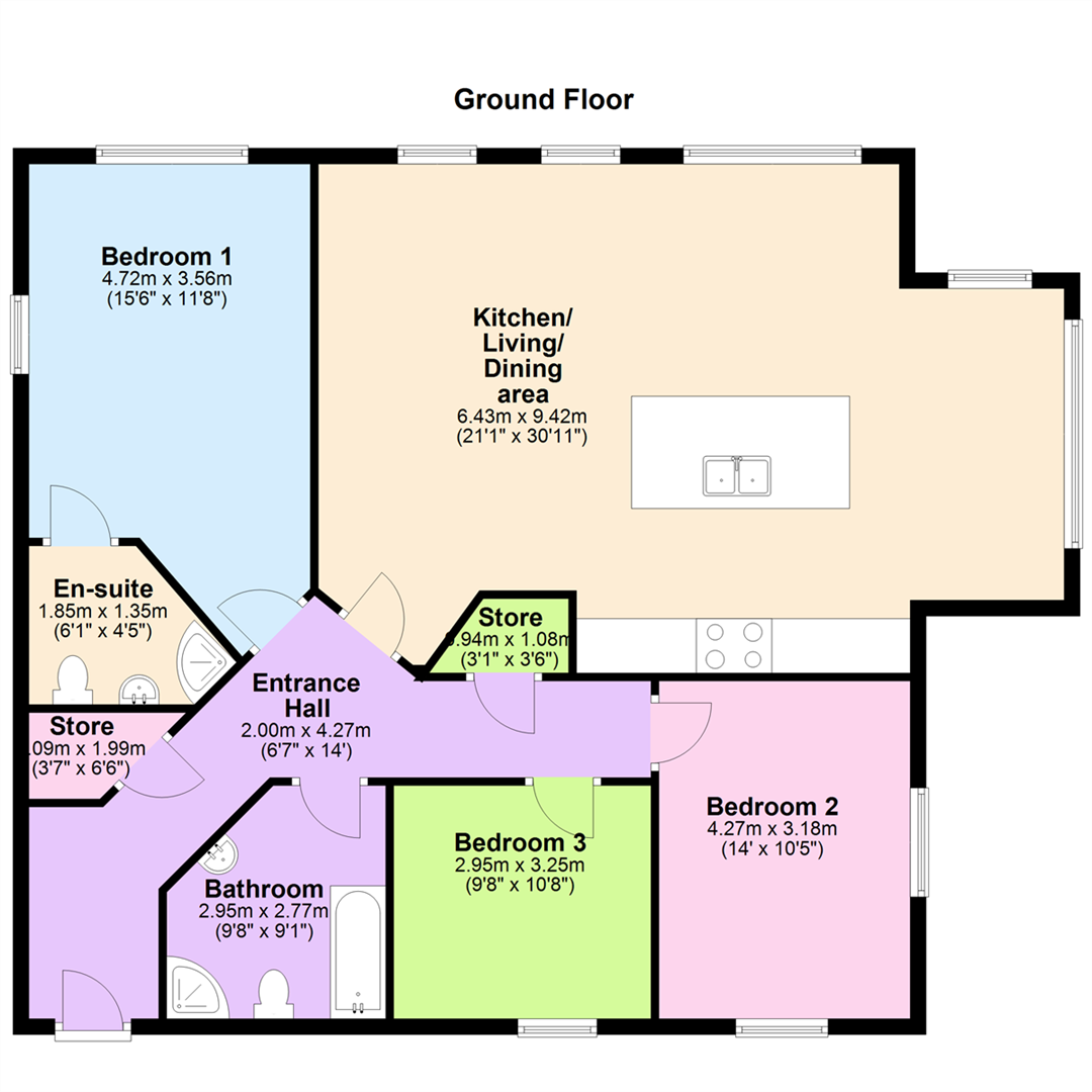 The apartment comprises three well-proportioned bedrooms, including a master bedroom with a luxurious ensuite shower room. A contemporary main bathroom serves the remaining bedrooms. The highlight of the home is the magnificent open-plan lounge, featuring a deluxe, fully fitted kitchen and a generous dining area perfect for both relaxing and entertaining.