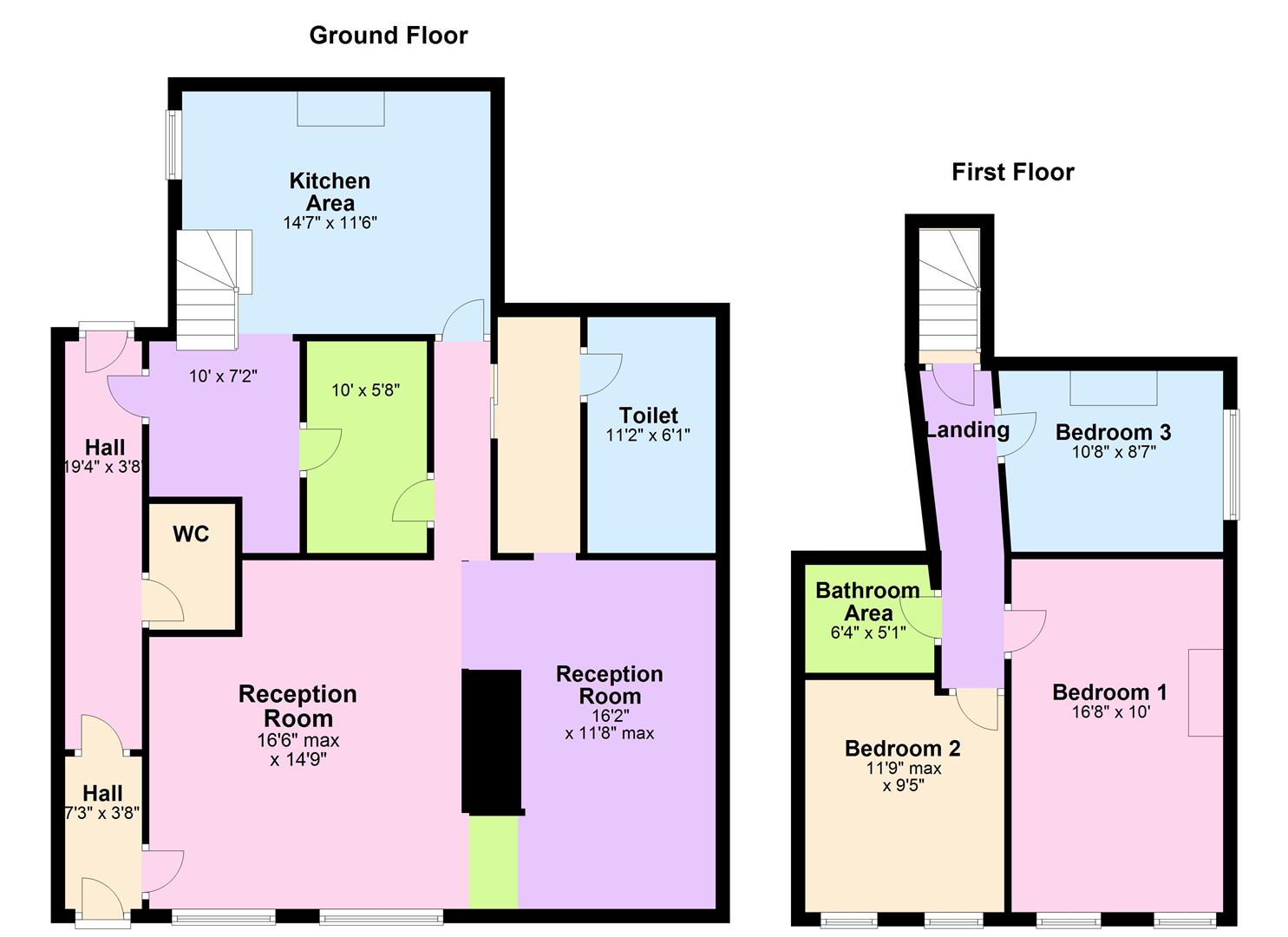 Ground Floor - Reception/Bar Area, Kitchen, Two Store Rooms and Toilets. First Floor - Three Bedrooms and Bathroom Area.