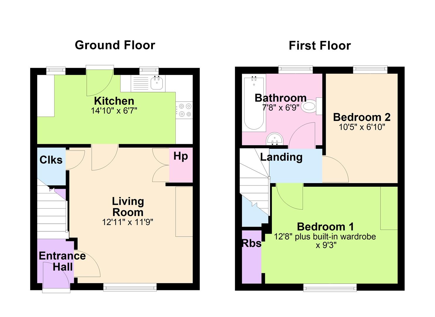 The ground floor comprises generous living room with open fire and open plan kitchen . The first floor boasts family bathroom and two double bedrooms.