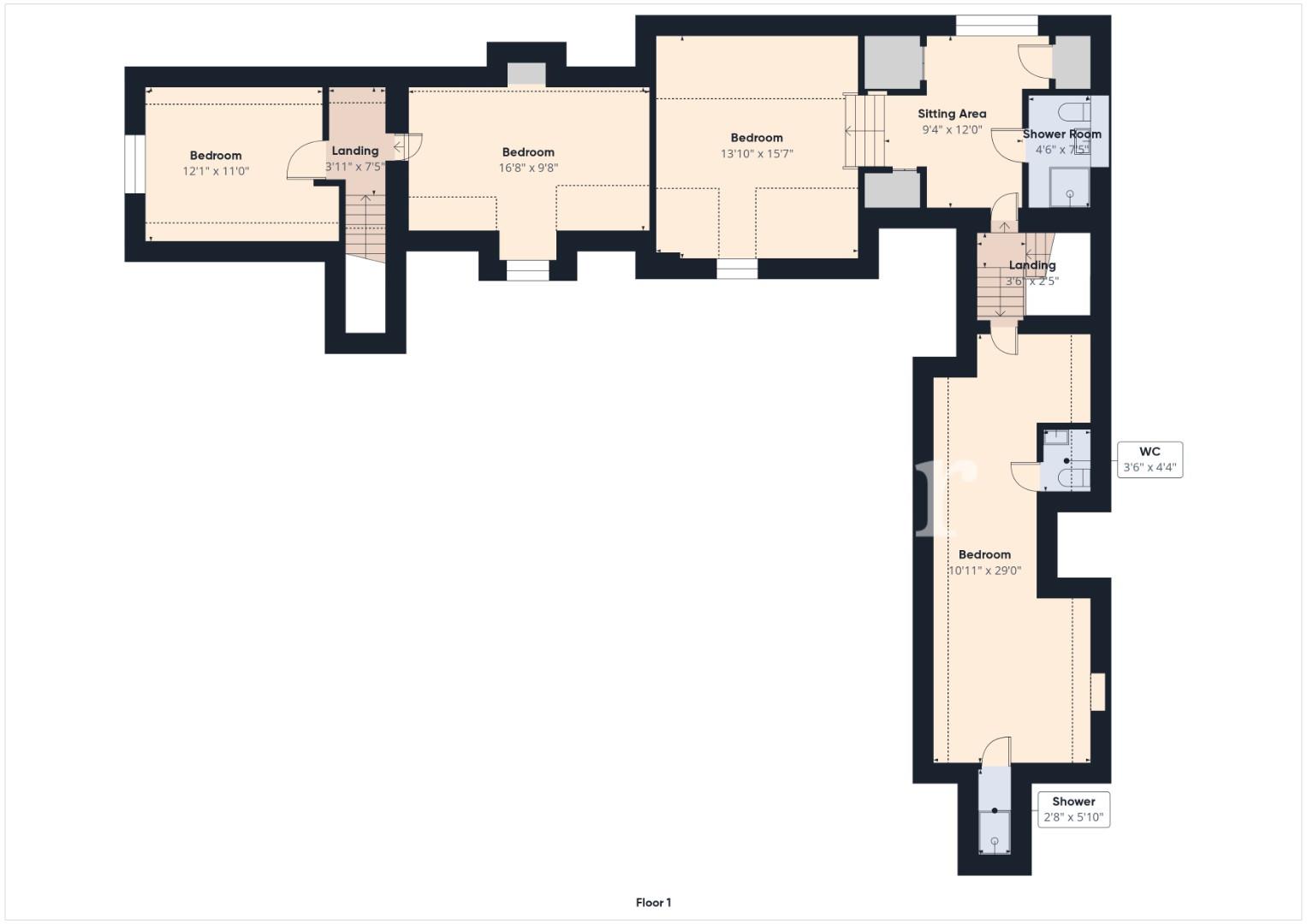 Shower Room 4'4" X 8'5" (1.32m X 2.57m)