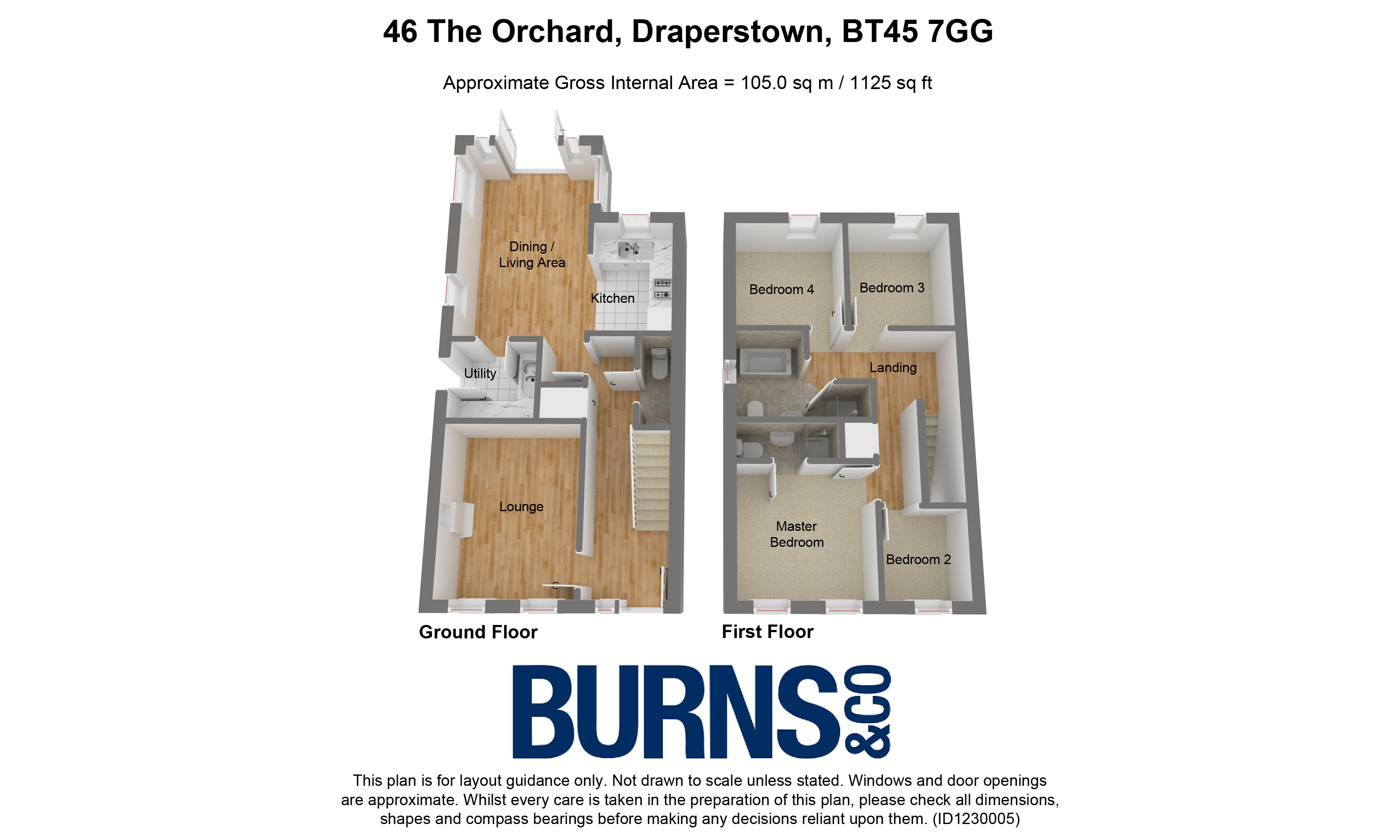 Modern internal accommodation including: spacious kitchen/dining/living area; four well-proportioned bedrooms (master with en suite); 3 No. toilet facilities; etc.