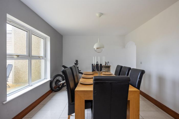 Dining room tiled flooring, windows to rear. Door to cinema room.