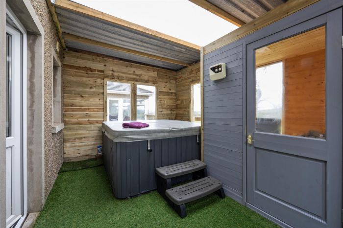 Two windows to side, window to rear, double door. Space for Sauna and Hot Tub.
