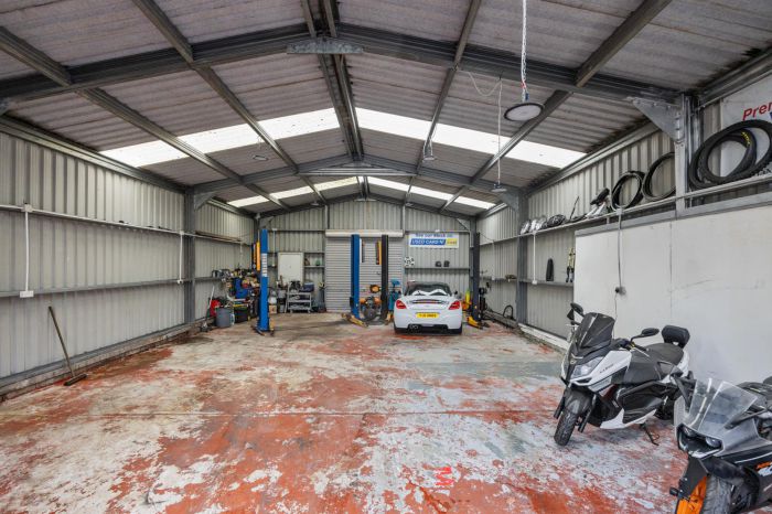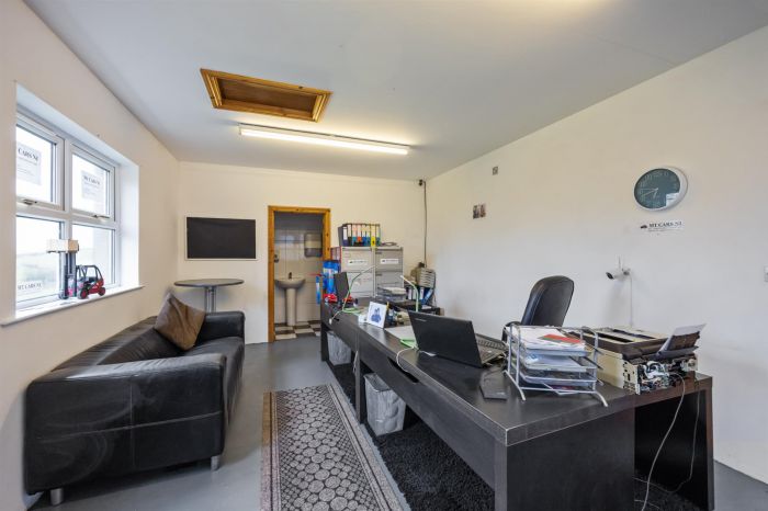 Detached garage with roller shutter door. Pedestrian door. Power and light. Office with shower room off.