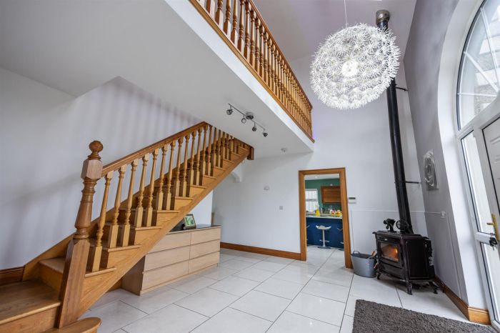 The spacious reception hall, with multi fuel stove and tiled floors sets the tone for the journey through this luxurious home. Outside the garage and outbuilding are ideal for someone who runs their own business or wants further accommodation for additional income. With so many possibilities from this contemporary residence early viewing is a must.