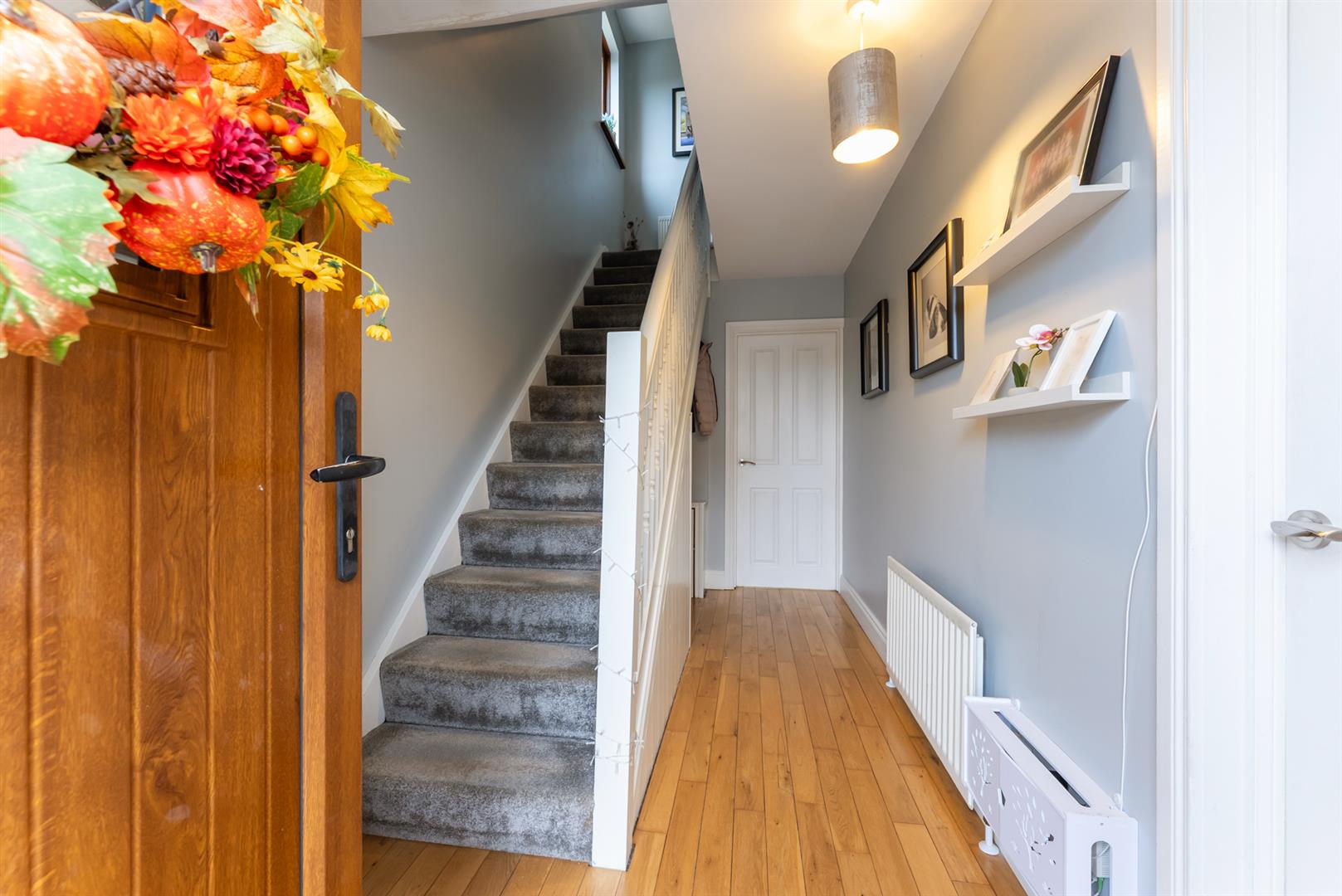 To the front is a large stoned driveway with ample parking and a small garden laid out in lawns. To the rear is an enclosed garden with patio area and garden laid out in lawns.