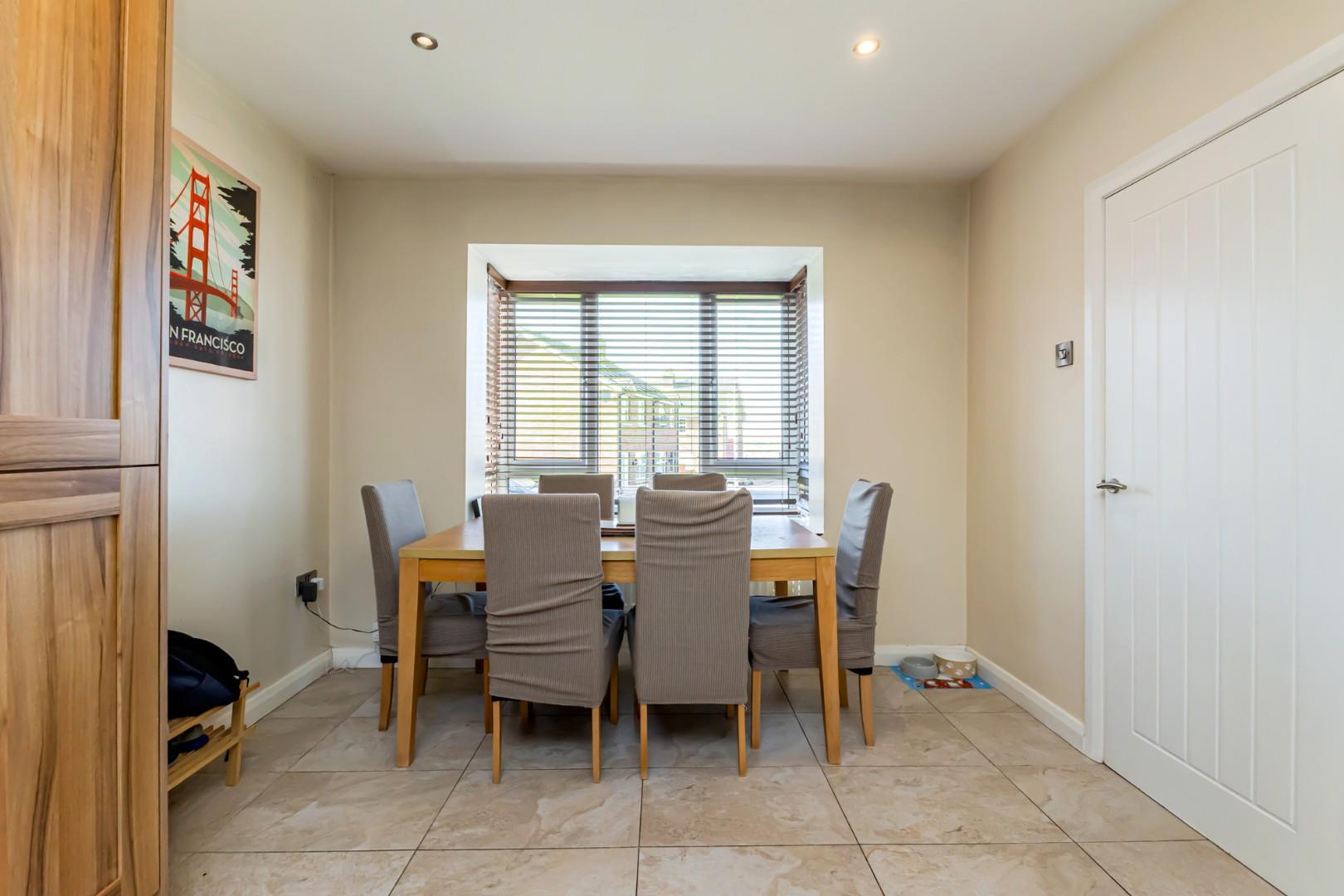 One of the standout features of this home is the large open-plan kitchen and dining area. This contemporary space is adorned with stylish tiles, making it not only functional but also aesthetically pleasing. It is perfect for family meals or hosting friends, allowing for seamless interaction while cooking and dining.