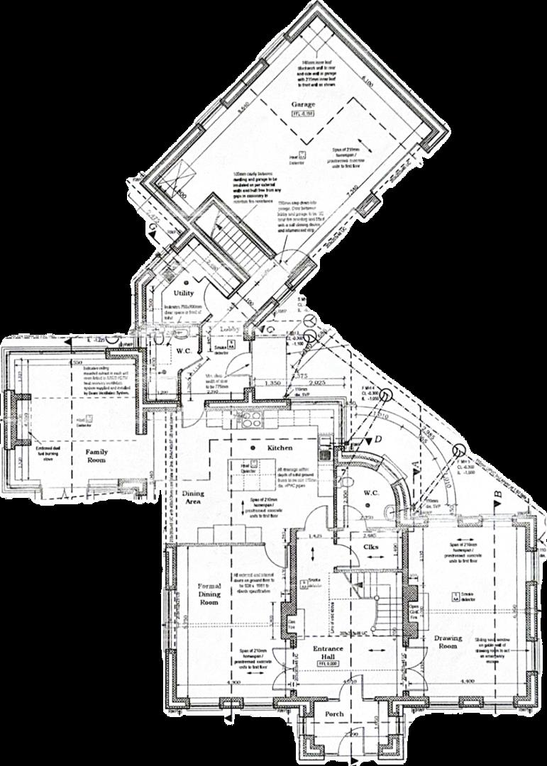 Entrance door with triple glazed side panels, "Imola" Italian porcelain tiled flooring, beam vacuum and ventilation system, feature fireplace with "Thorma" multi fuel stove, underfloor heating with wall mounted digital control, ceiling spotlights and stunning Walnut staircase to first floor