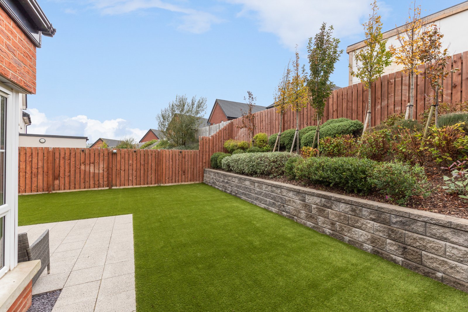 To the rear is a paved patio and artificial grass garden. Garden shed. To the front is a driveway for 3 cars.